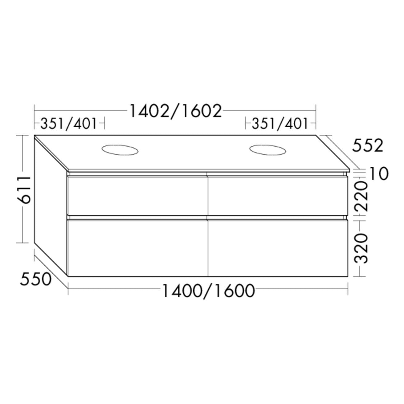 burgbad Lin20 Waschtischunterschrank mit Konsolenplatte 140 cm, 4 Auszüge, Beckenausschnitt links und rechts