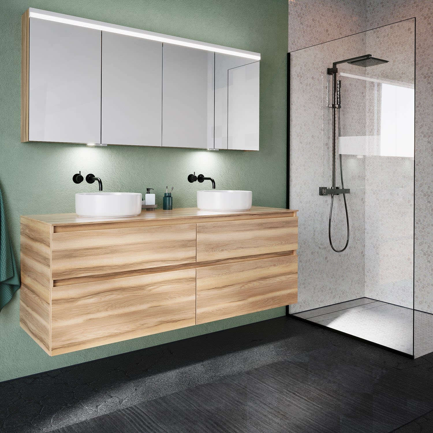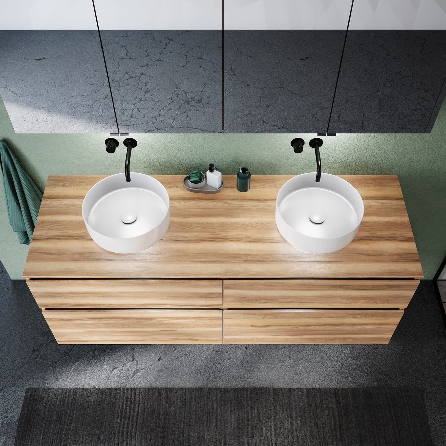 Kronenbach Cube Waschtischkonsole 161 cm für 2 Waschtische mit 4 Auszügen und TIP-ON