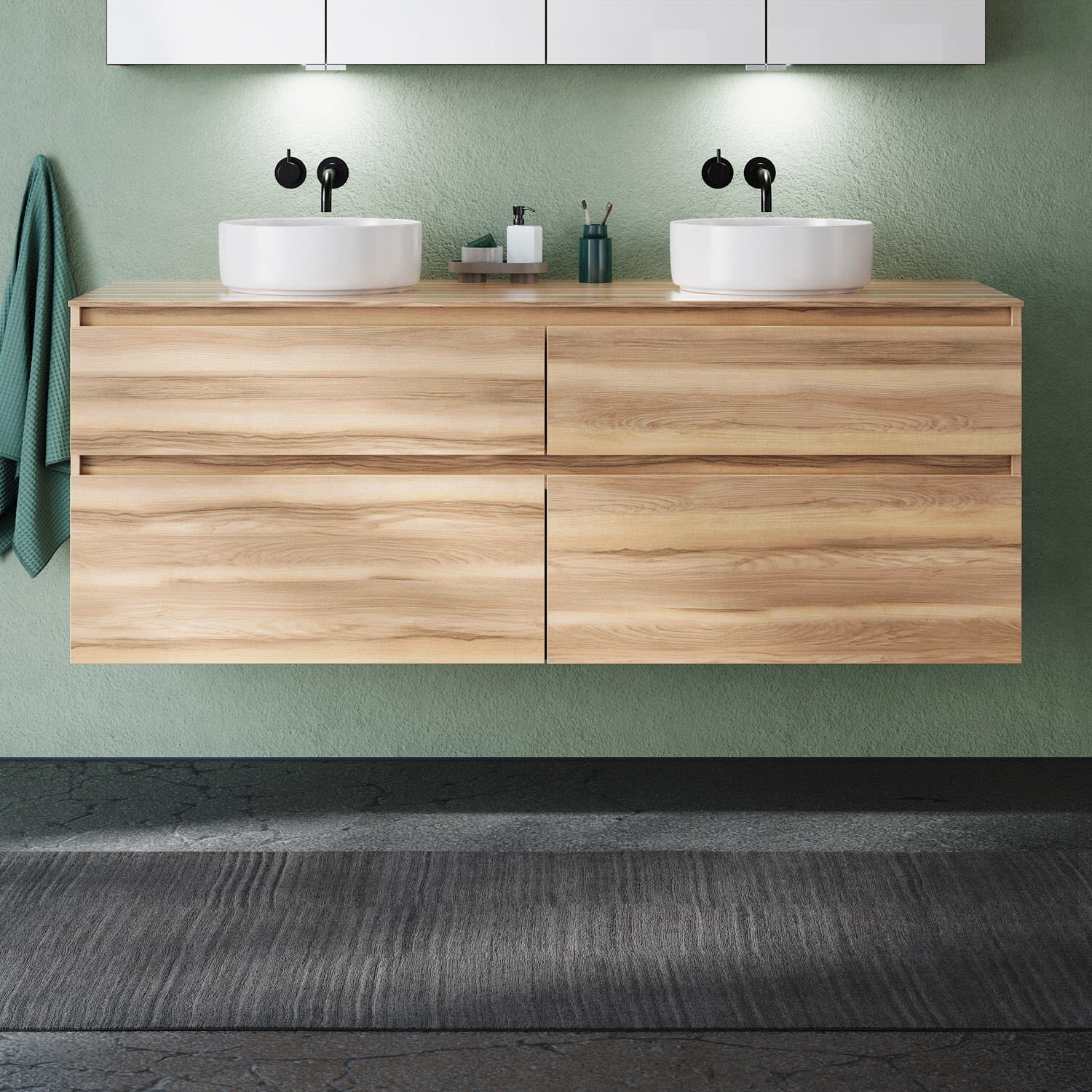 pianura Stella Waschtischunterschrank 140,5 cm mit Doppel-Aufsatzwaschtisch Sole