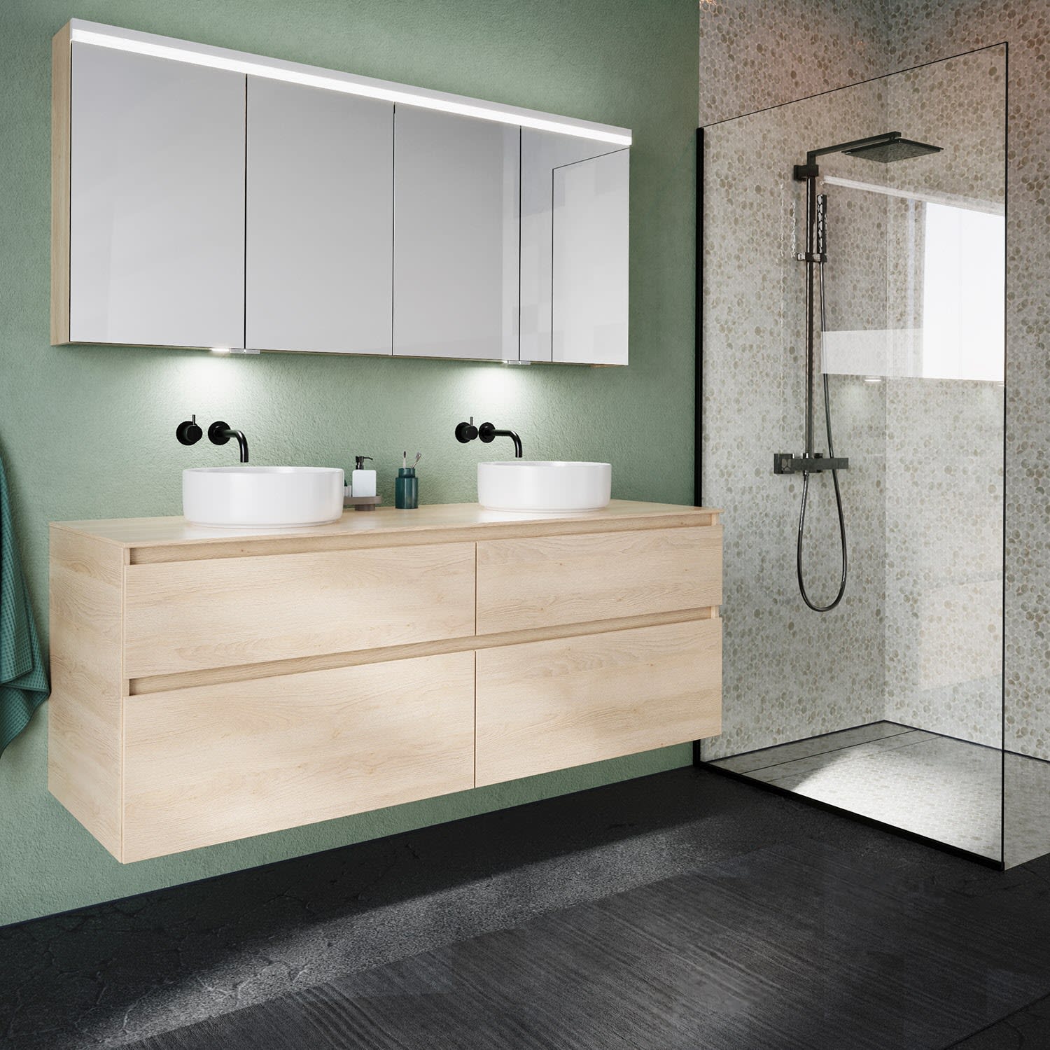 Kronenbach Cube Waschtischkonsole 161 cm für 2 Waschtische mit 4 Auszügen und TIP-ON