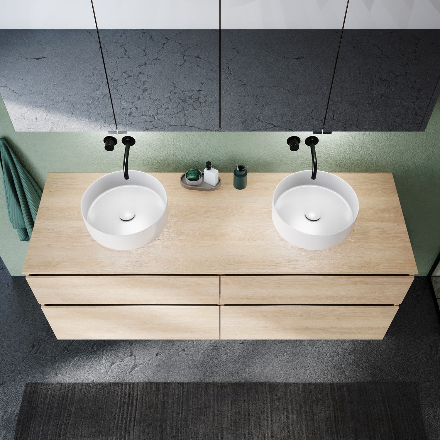pianura Stella Waschtischunterschrank 140,5 cm mit Doppel-Aufsatzwaschtisch Sole