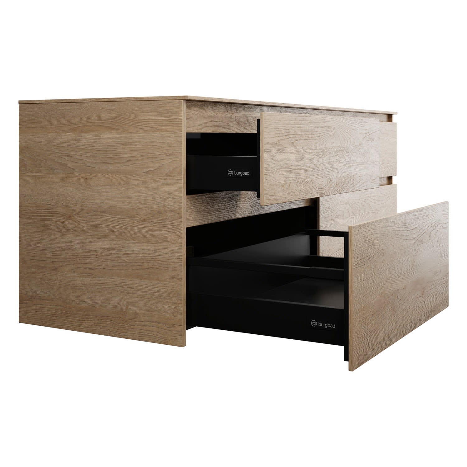 burgbad Lin20 Waschtischunterschrank mit Konsolenplatte 160 cm, 4 Auszüge, Beckenausschnitt links und rechts