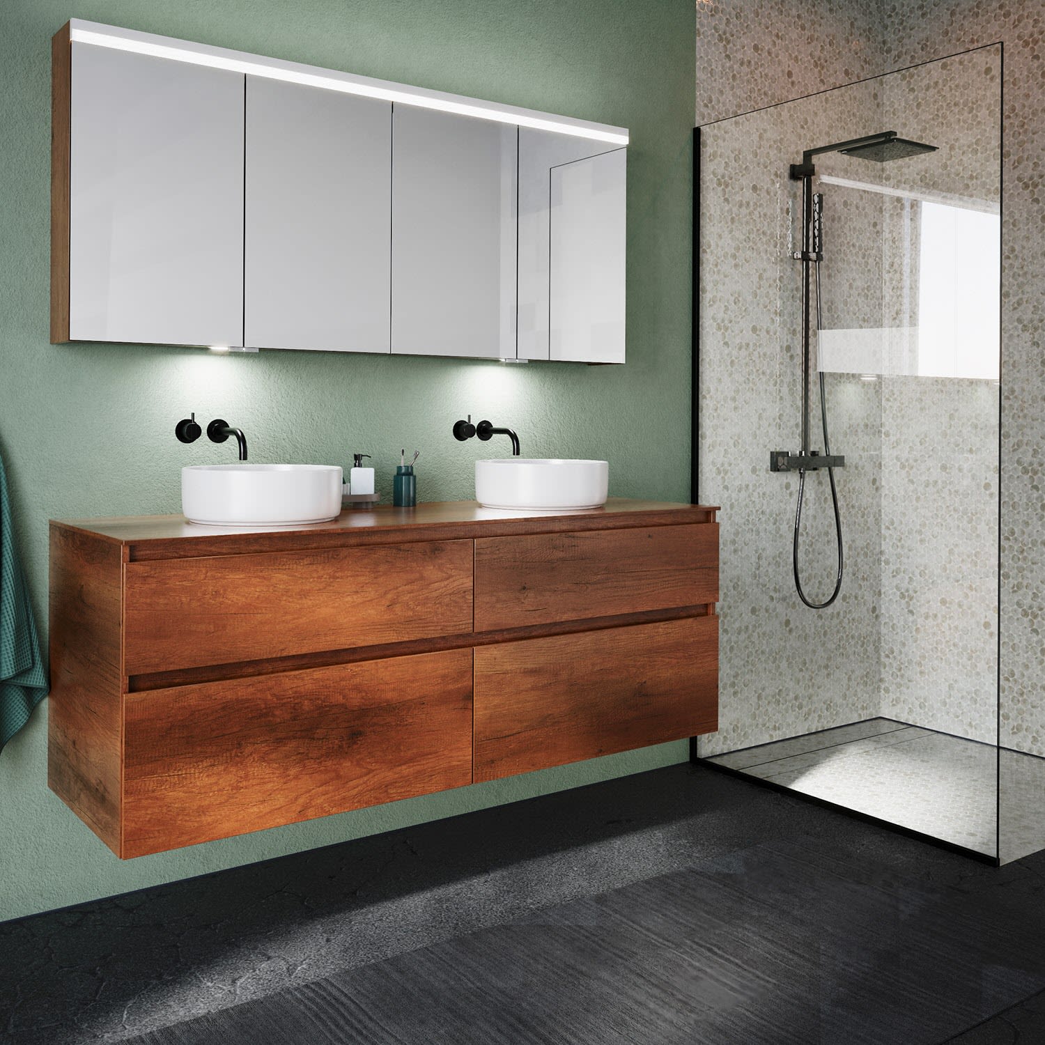 Kronenbach Cube Waschtischkonsole 161 cm mit 4 Auszügen und TIP-ON