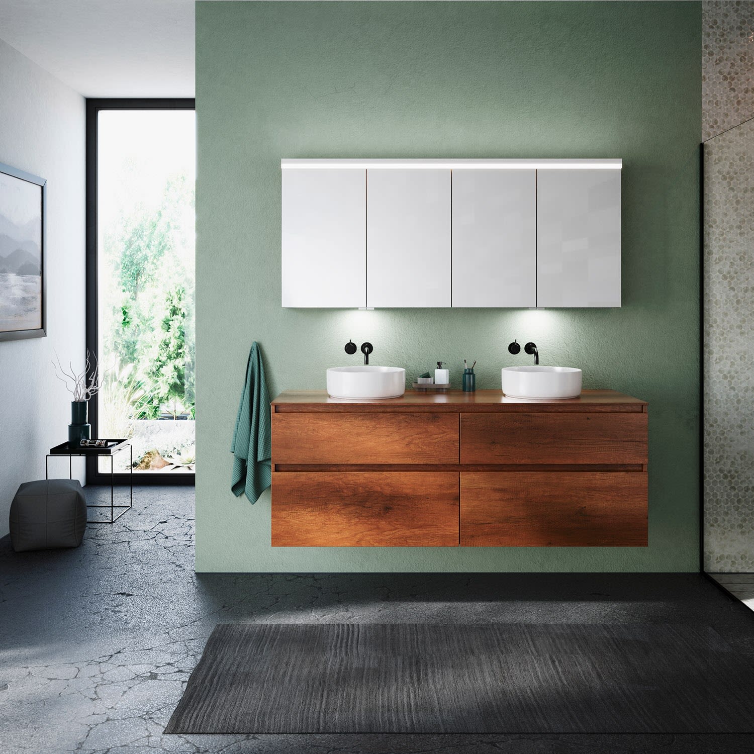 Kronenbach Cube Waschtischkonsole 161 cm für 2 Waschtische mit 4 Auszügen und TIP-ON