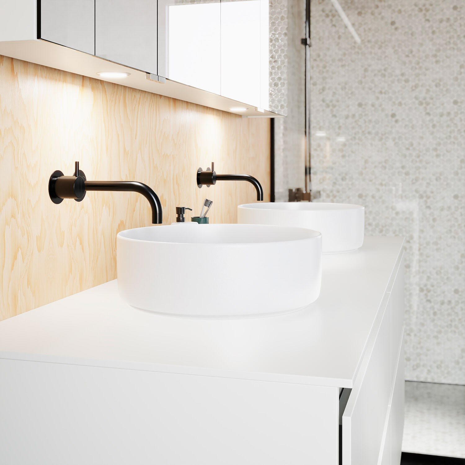 Die Waschtischplatte wird ohne Armaturbohrung geliefert. Armaturbohrungen müssen bauseits vorgenommen werden.
