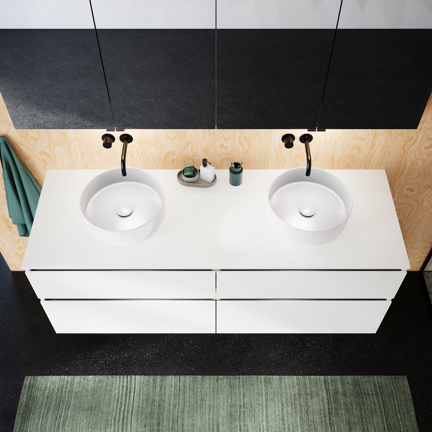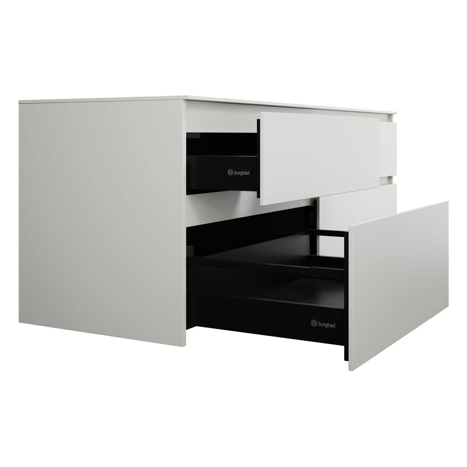 burgbad Lin20 Waschtischunterschrank mit Konsolenplatte 160 cm, 4 Auszüge, Beckenausschnitt links und rechts
