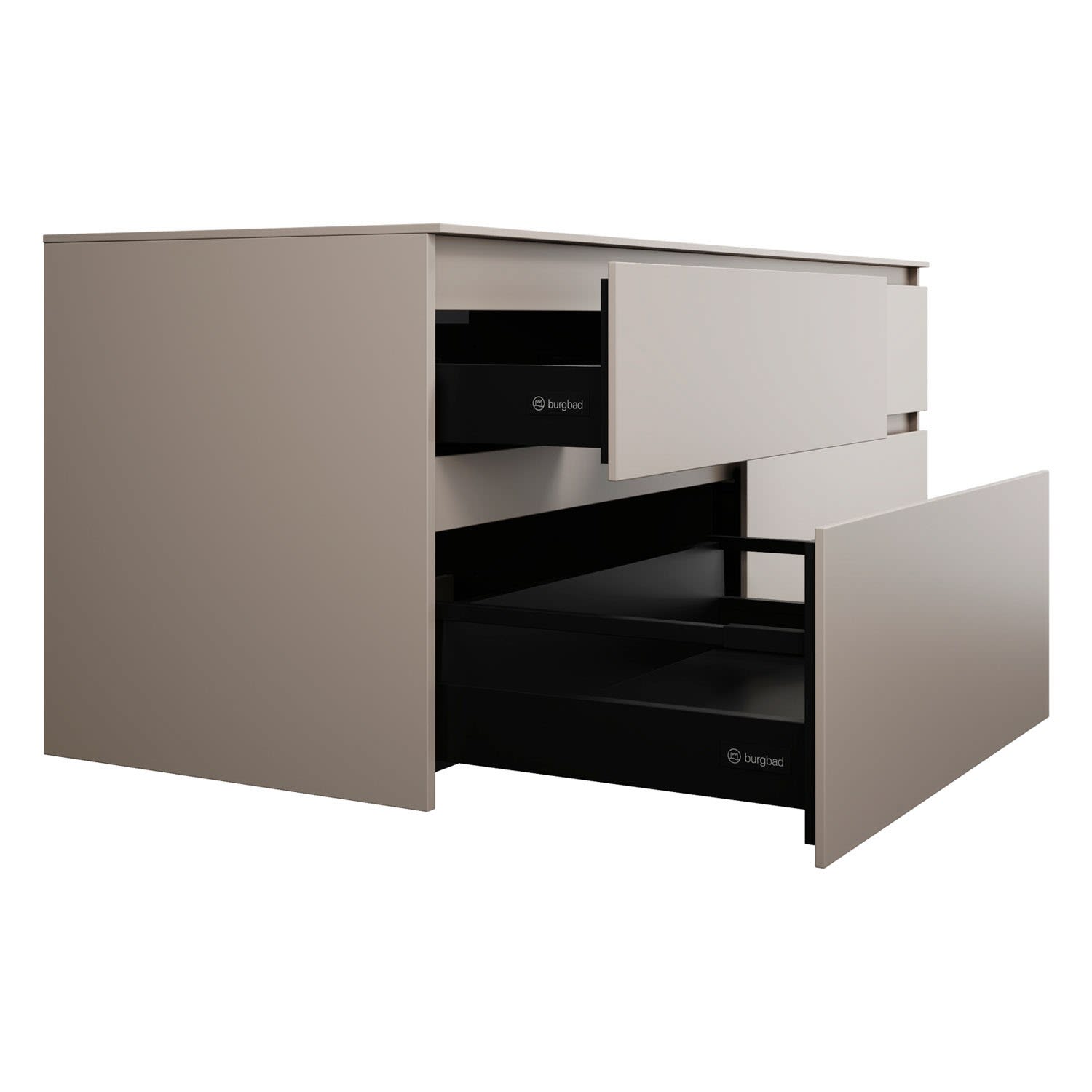 burgbad Lin20 Waschtischunterschrank mit Konsolenplatte 160 cm, 4 Auszüge, Beckenausschnitt links und rechts