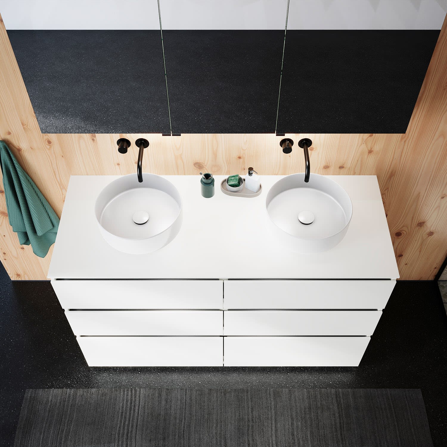 Die Waschtischplatte wird ohne Armaturbohrung geliefert. Armaturbohrungen müssen bauseits vorgenommen werden.