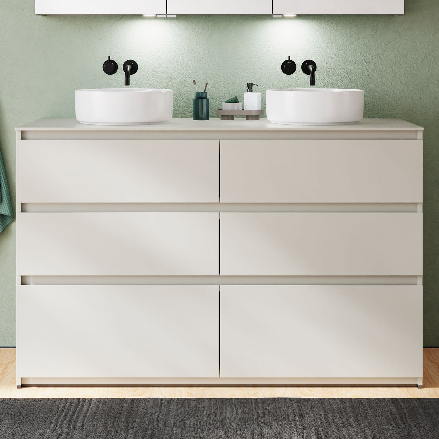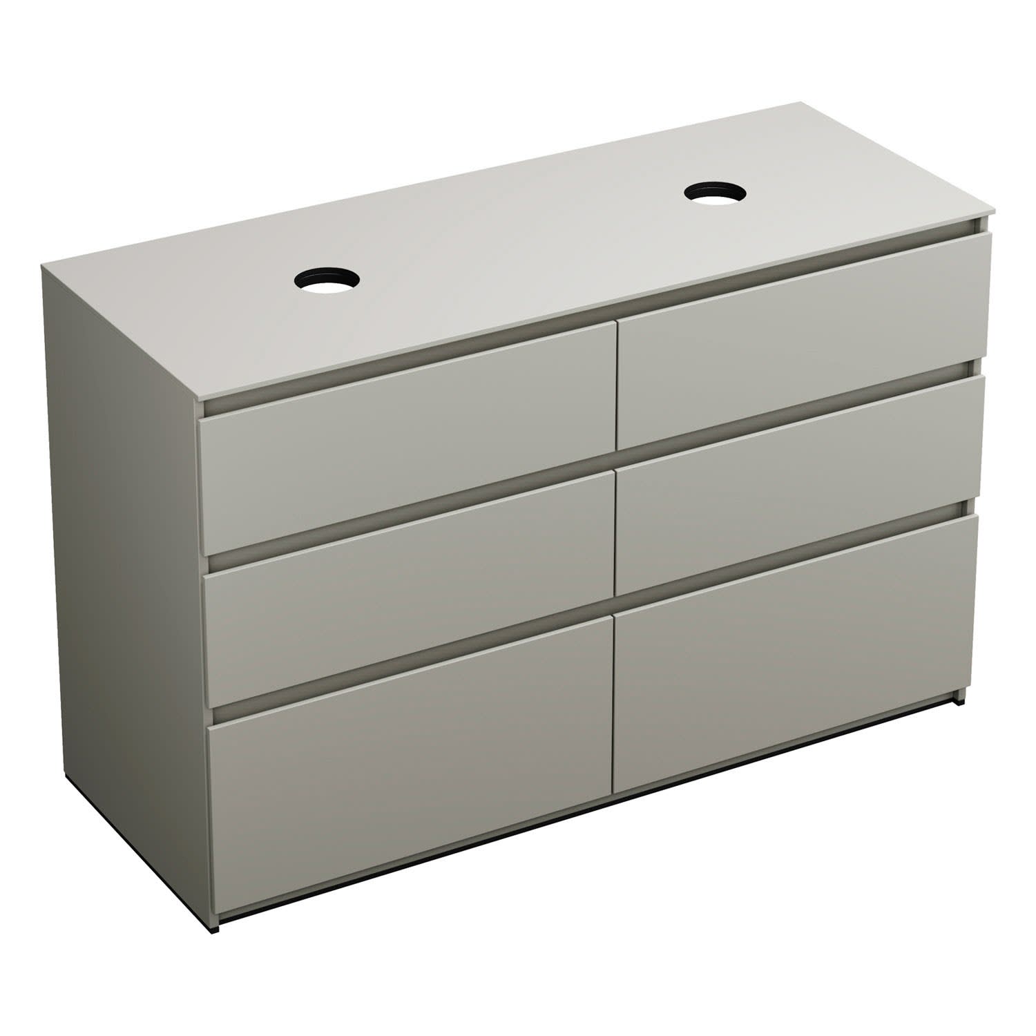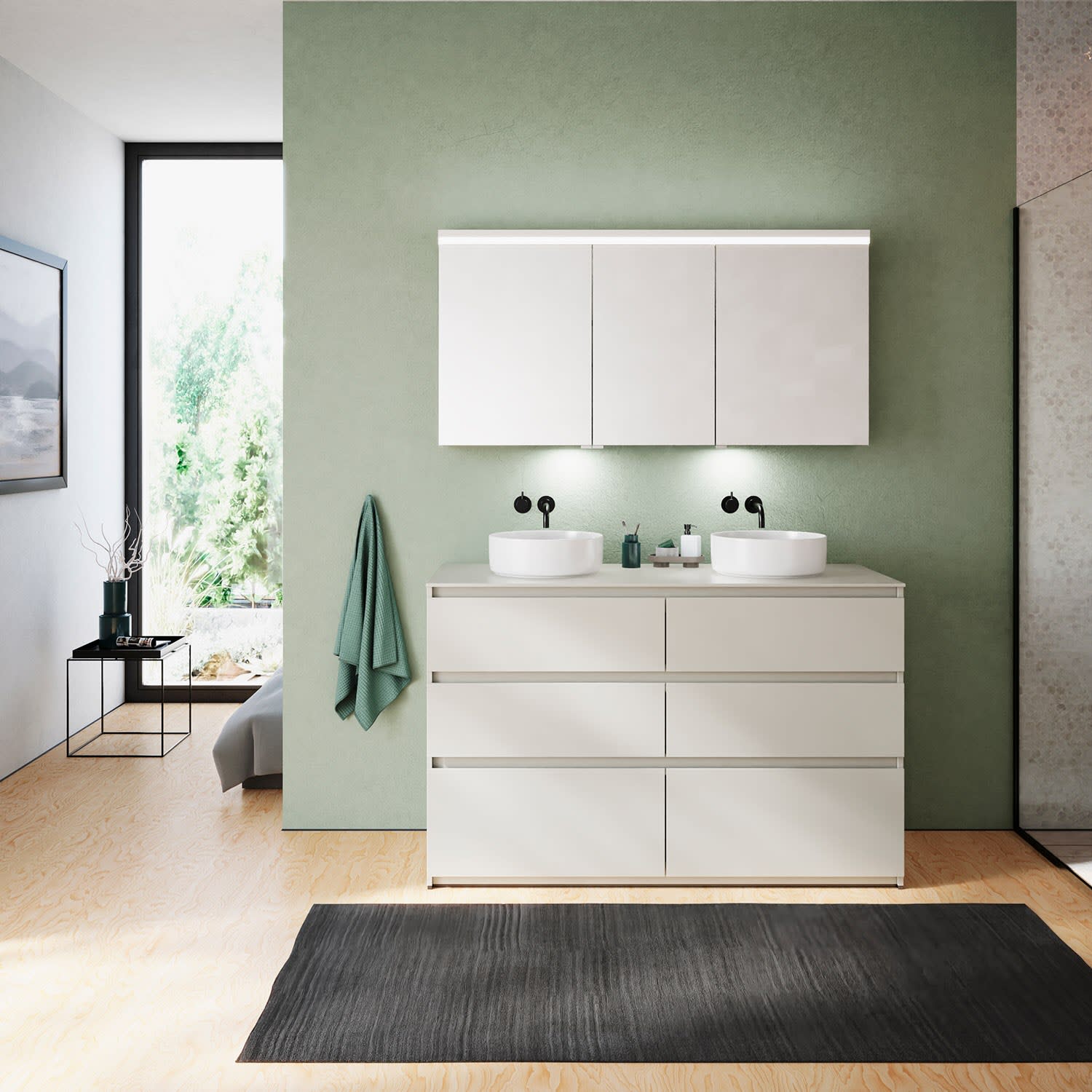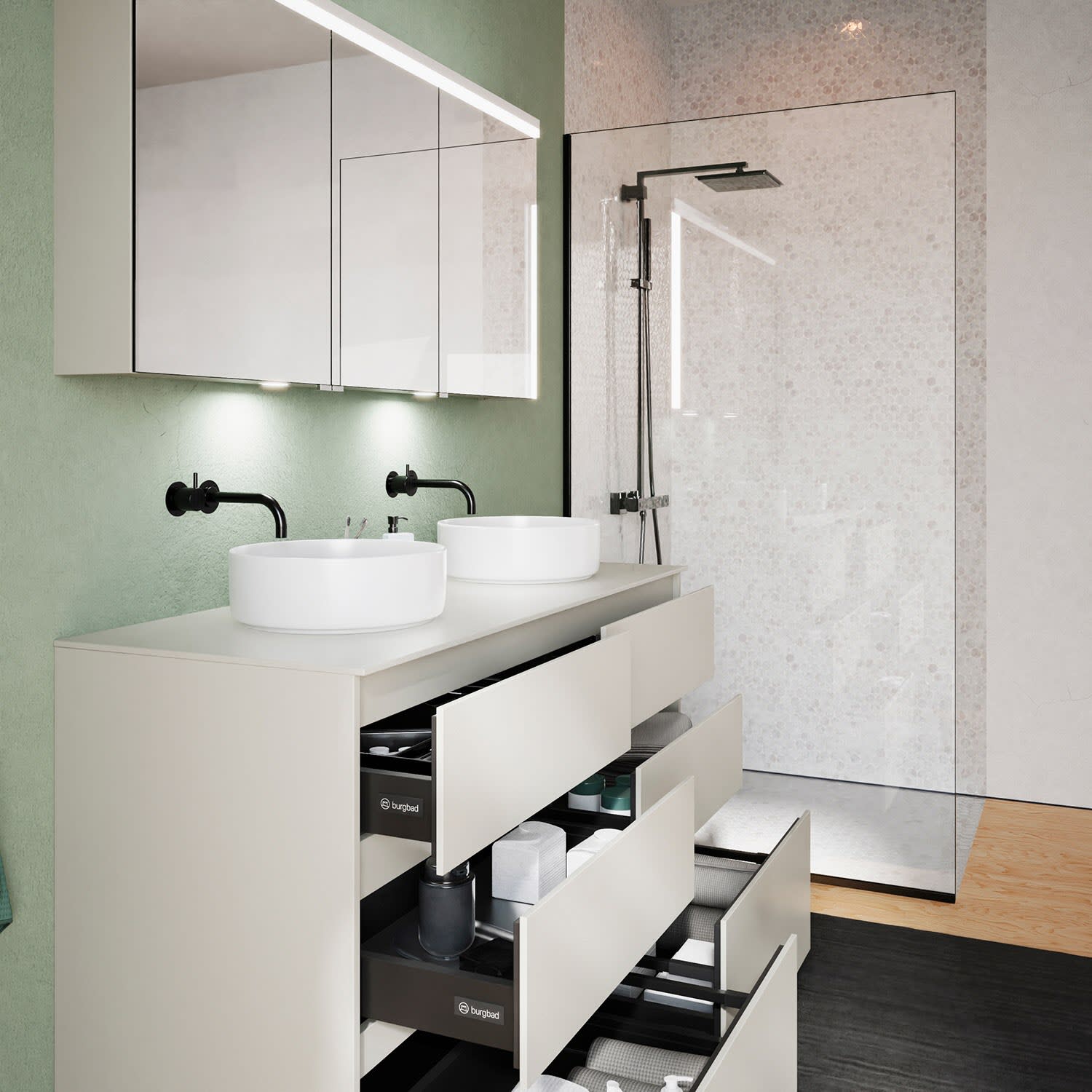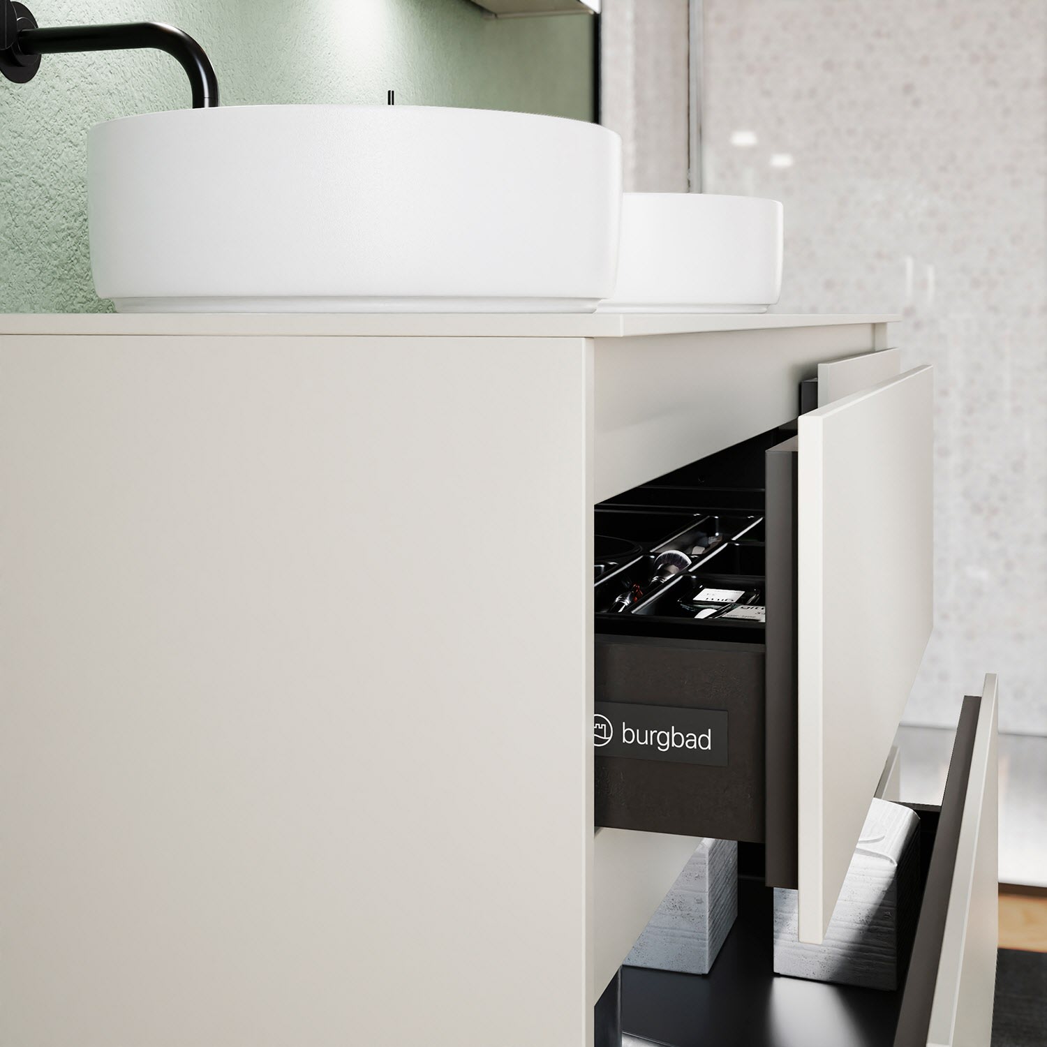 burgbad Lin20 Waschtischunterschrank mit Konsolenplatte 140 cm, 6 Auszüge, Beckenausschnitt links und rechts
