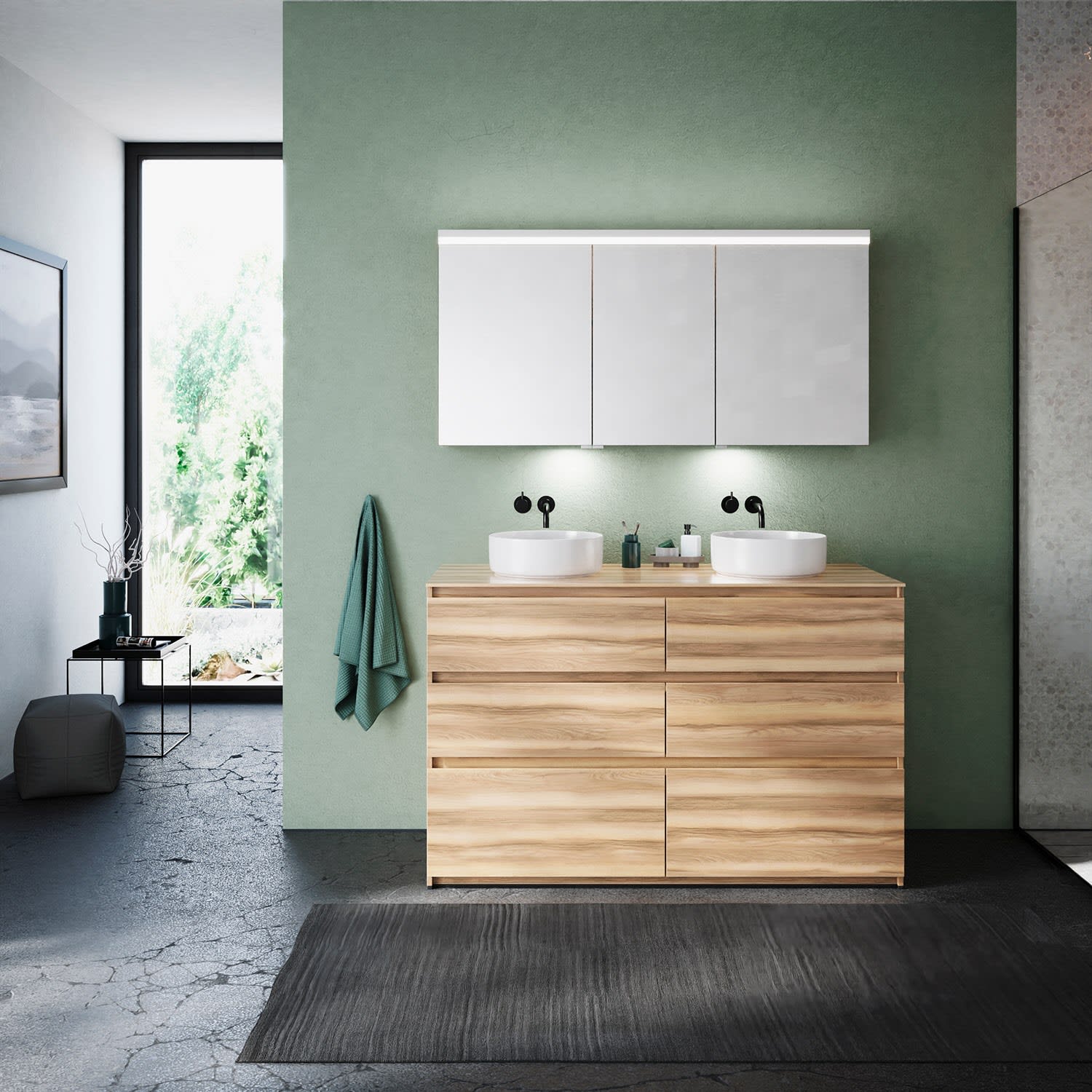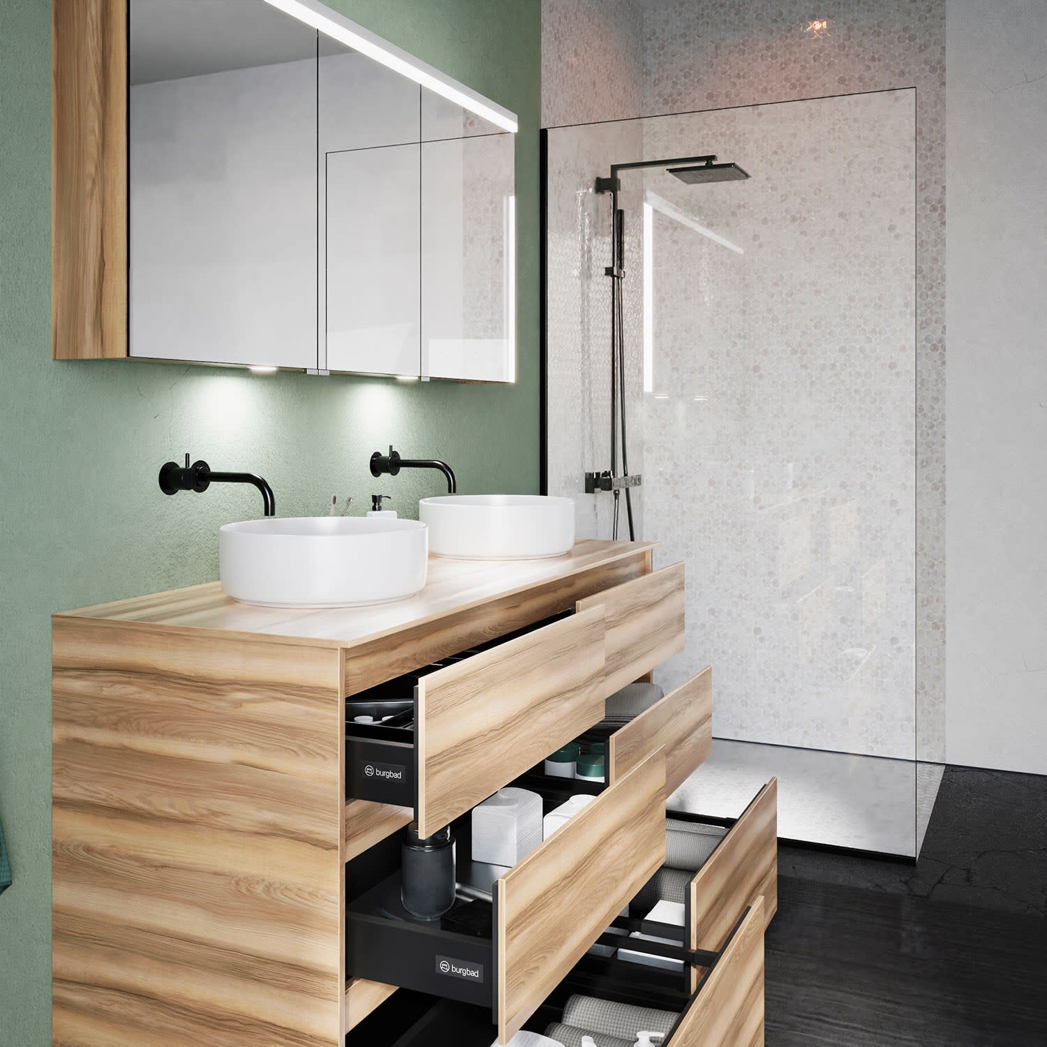 burgbad Lin20 Waschtischunterschrank mit Konsolenplatte 140 cm, 6 Auszüge, Beckenausschnitt links und rechts
