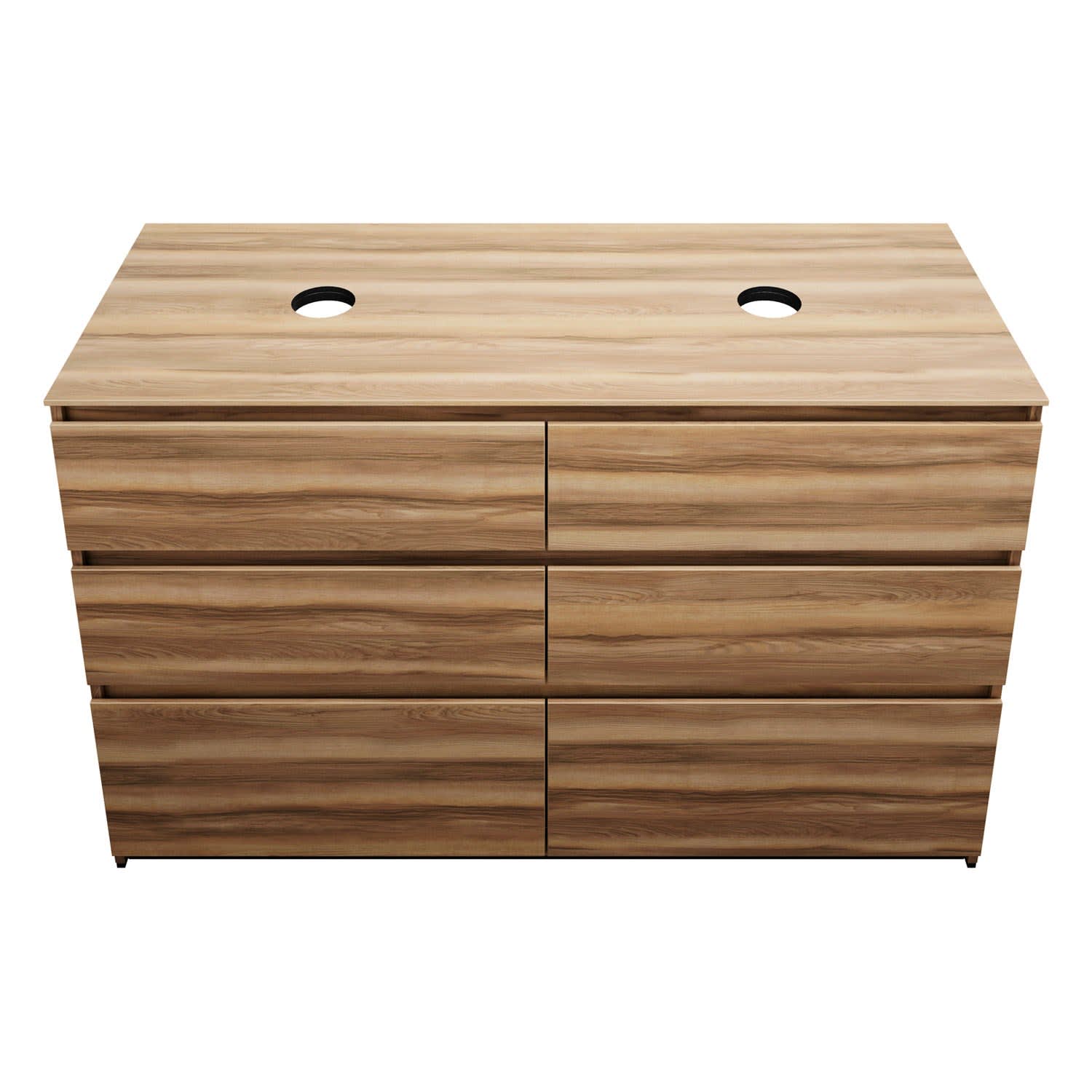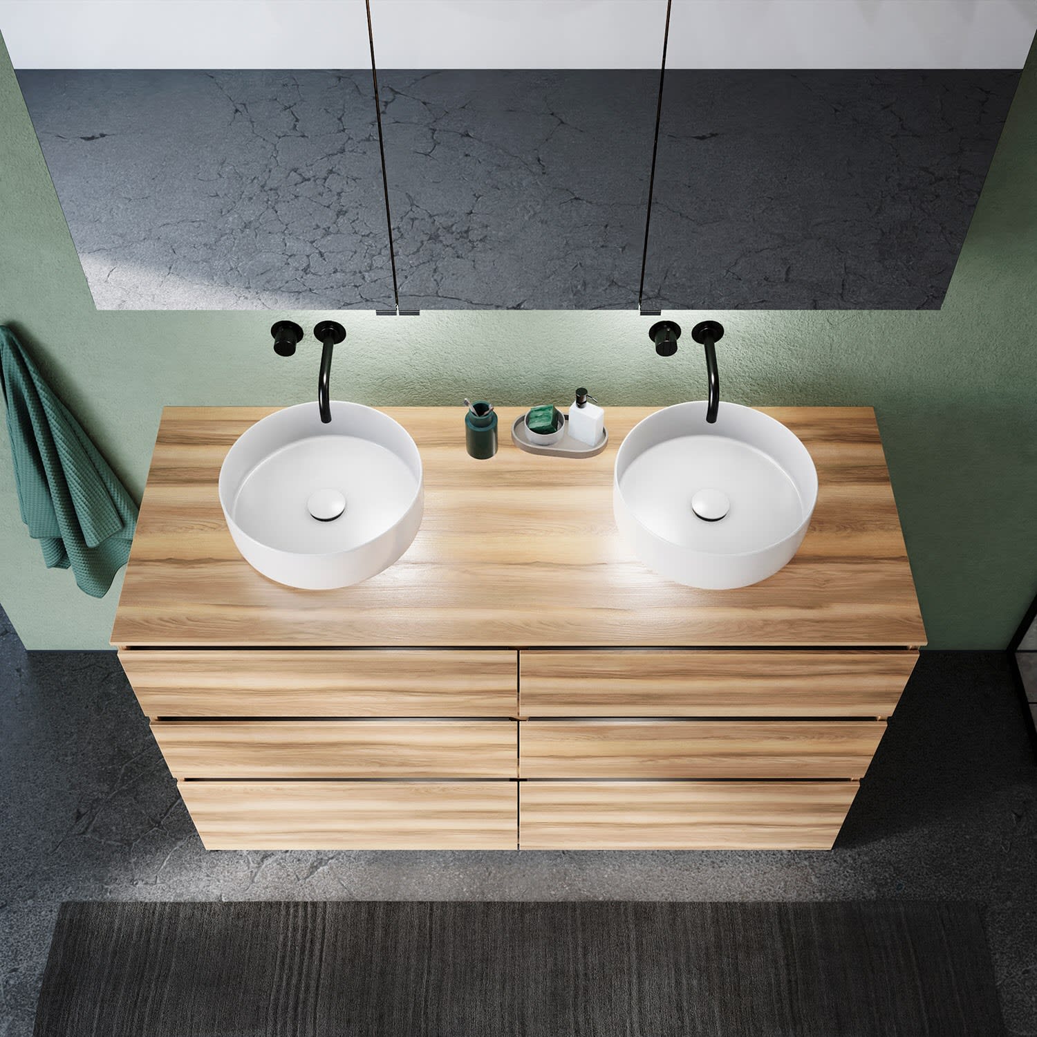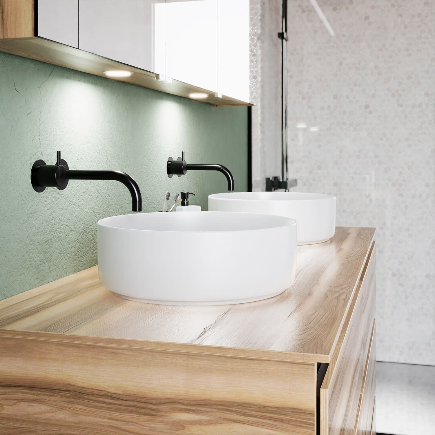 Die Waschtischplatte wird ohne Armaturbohrung geliefert. Armaturbohrungen müssen bauseits vorgenommen werden.
