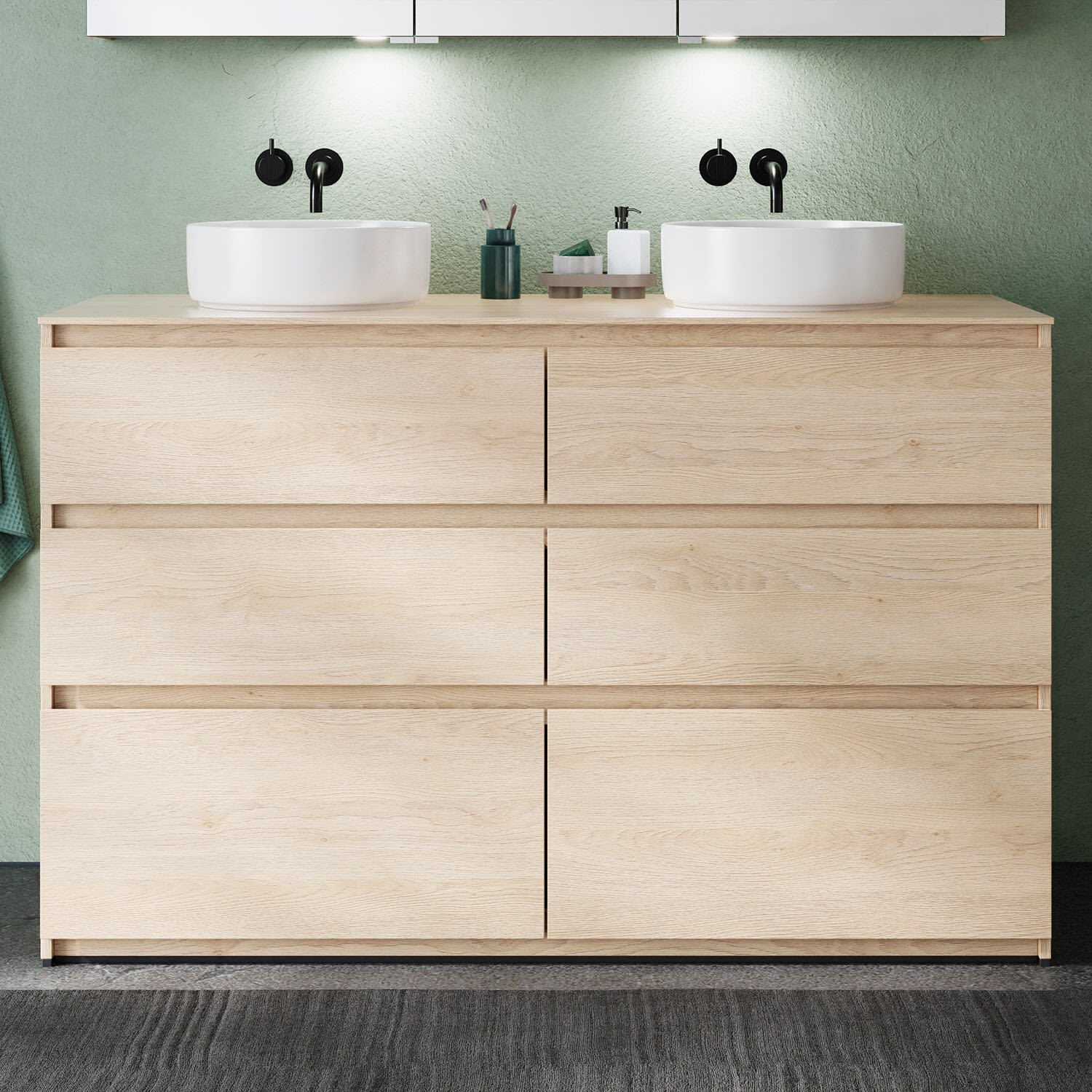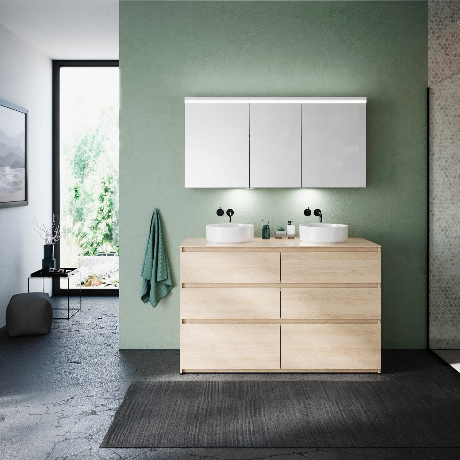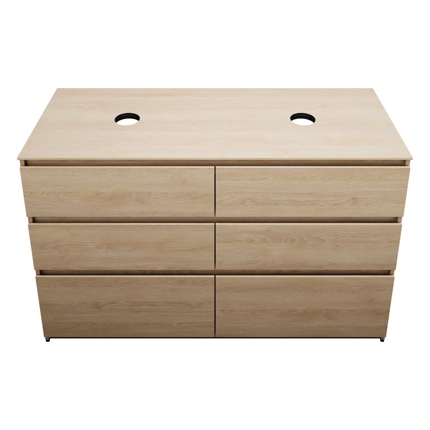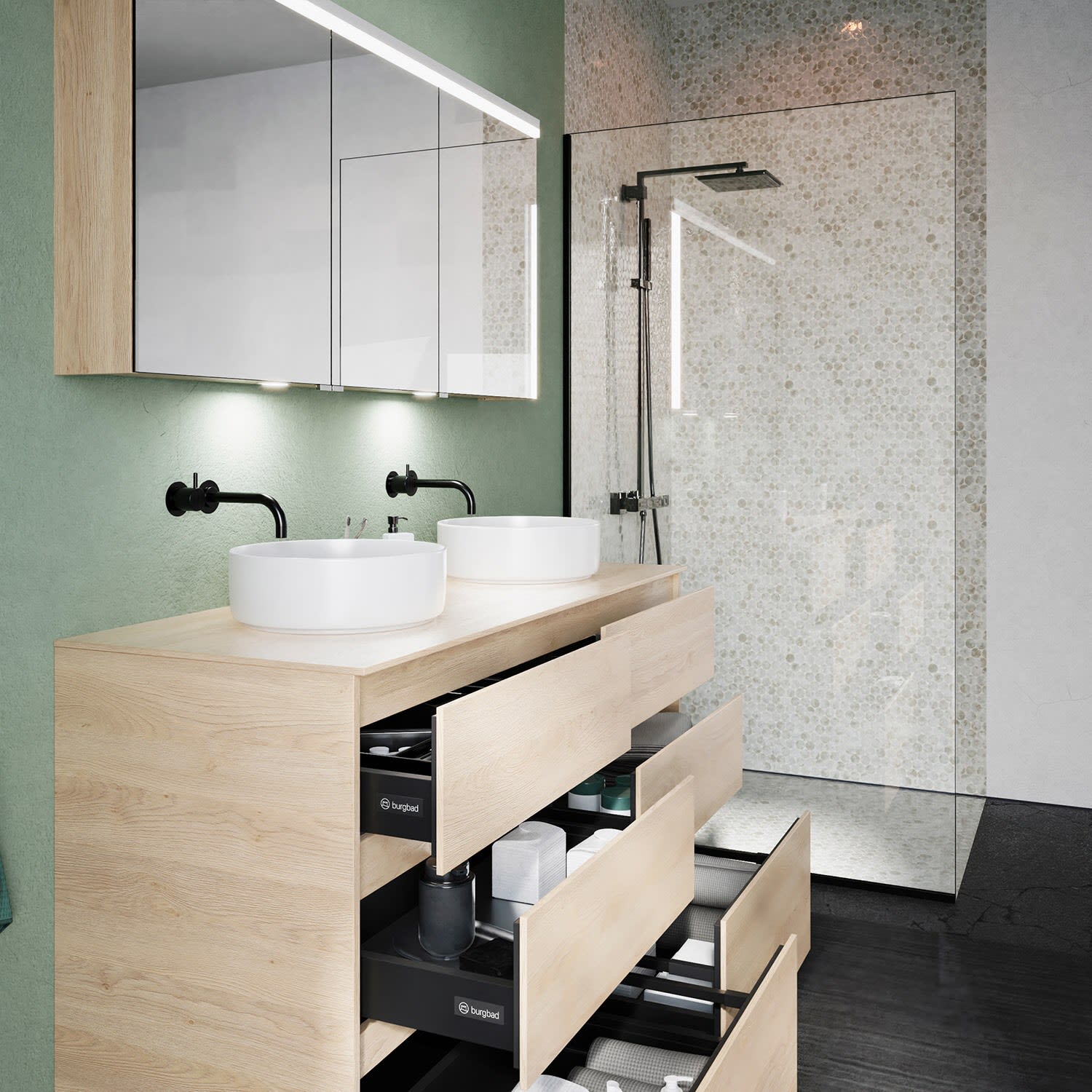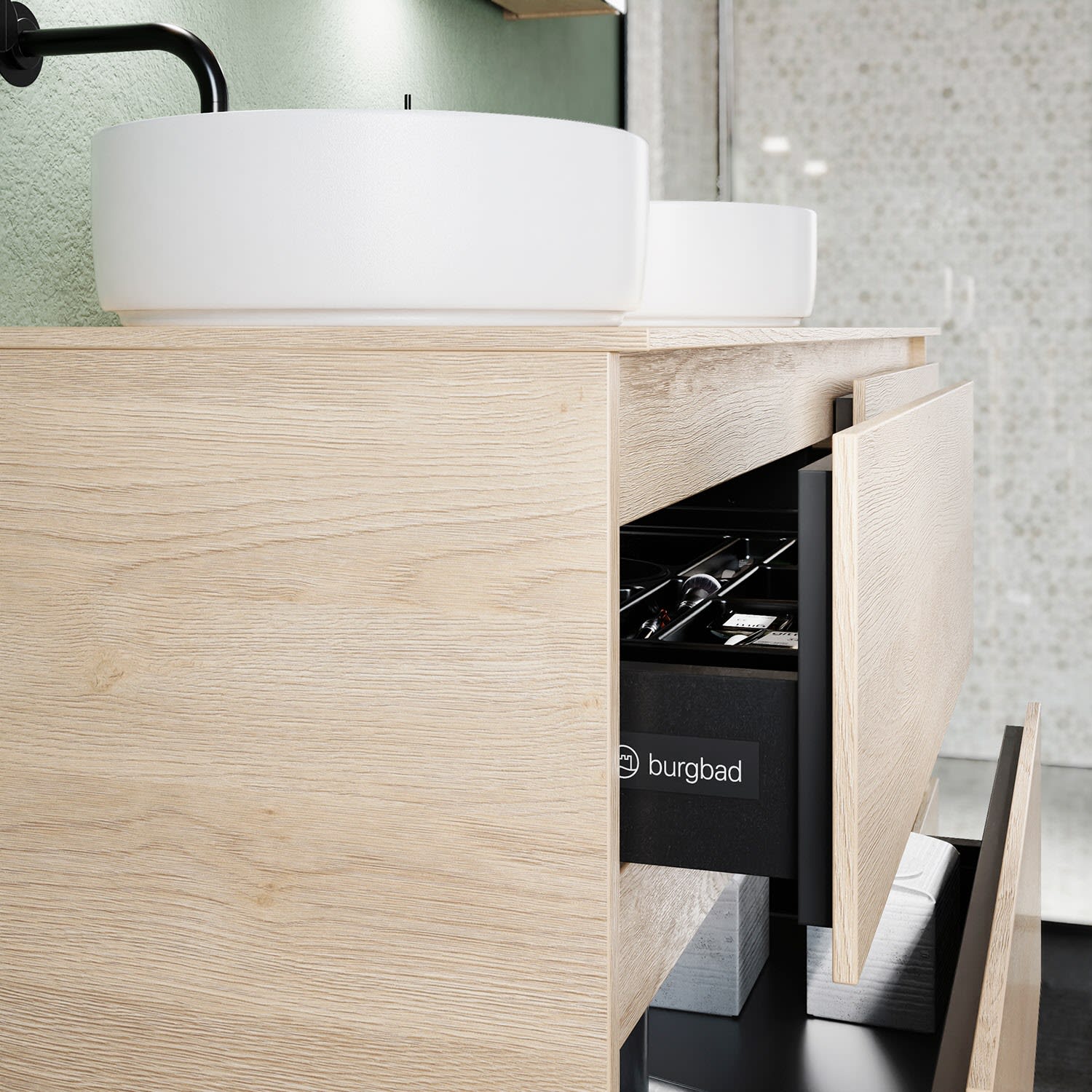 burgbad Lin20 Waschtischunterschrank mit Konsolenplatte 140 cm, 6 Auszüge, Beckenausschnitt links und rechts
