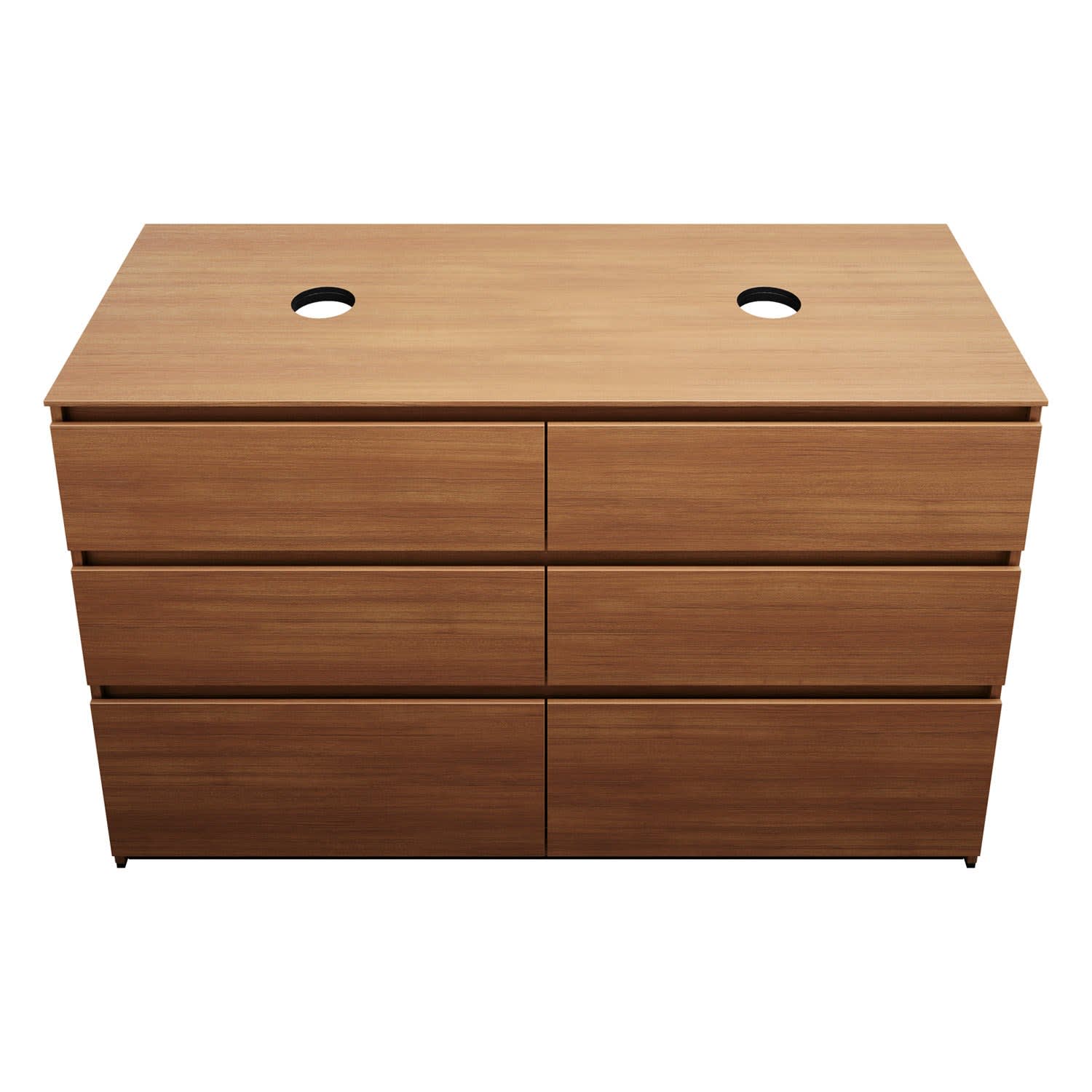 burgbad Lin20 Waschtischunterschrank mit Konsolenplatte 140 cm, 6 Auszüge, Beckenausschnitt links und rechts
