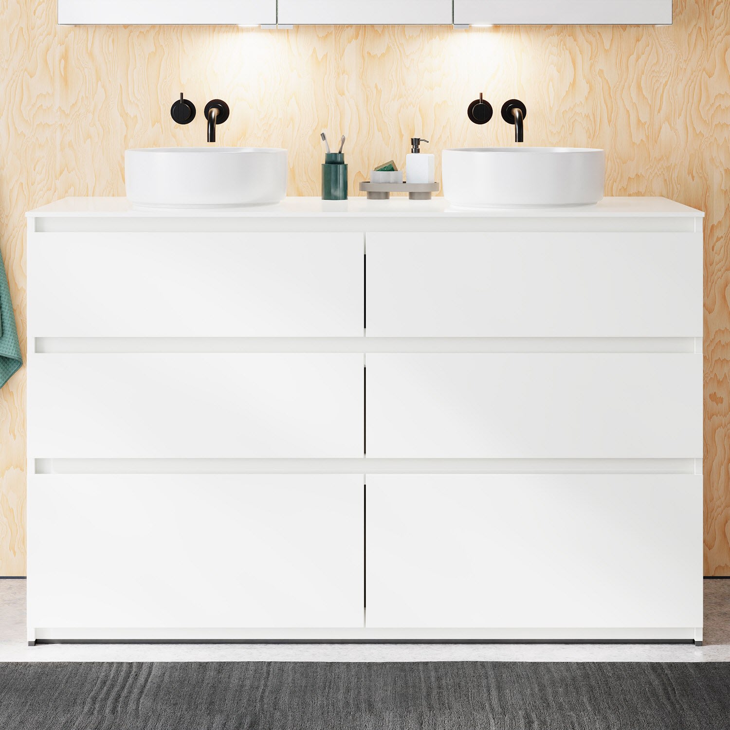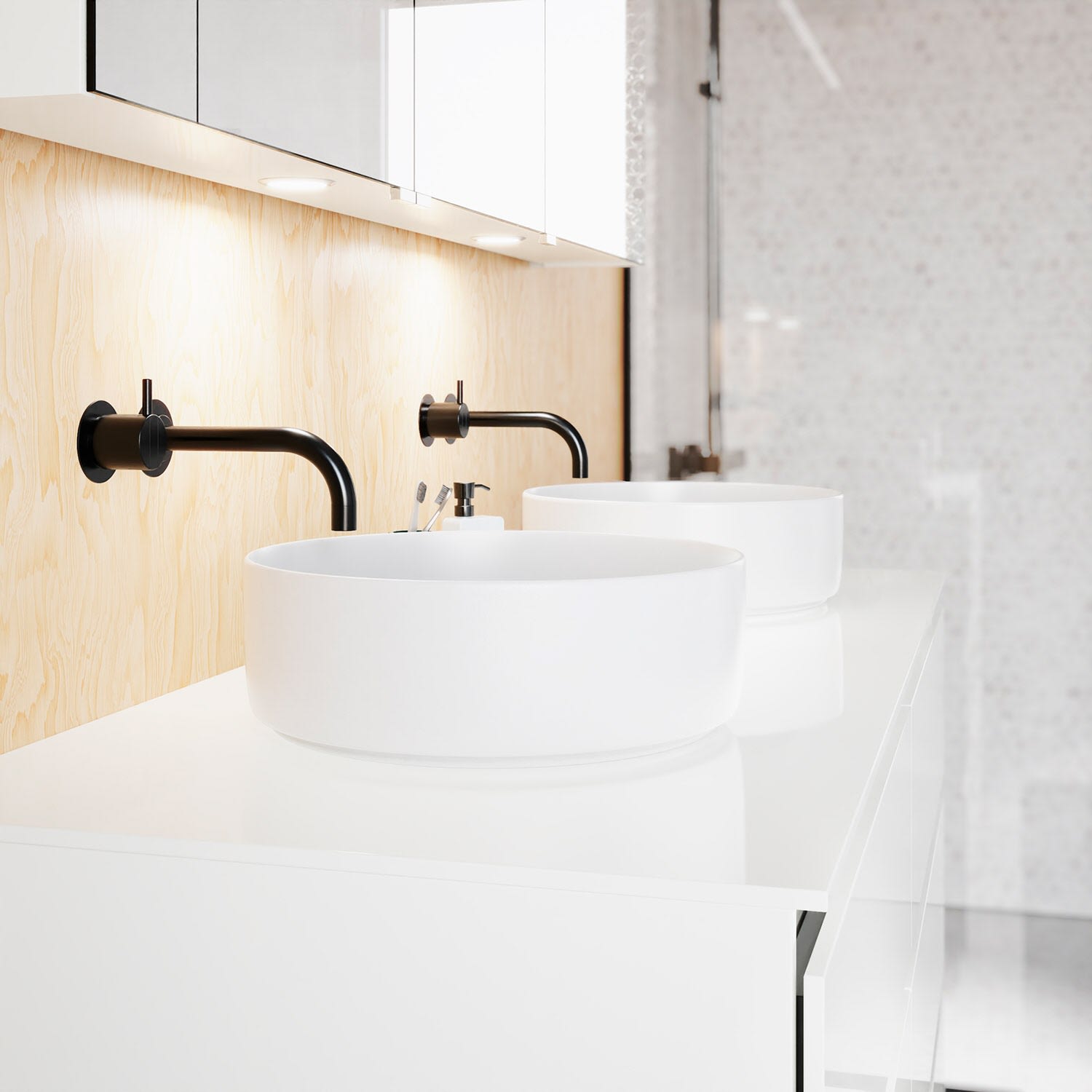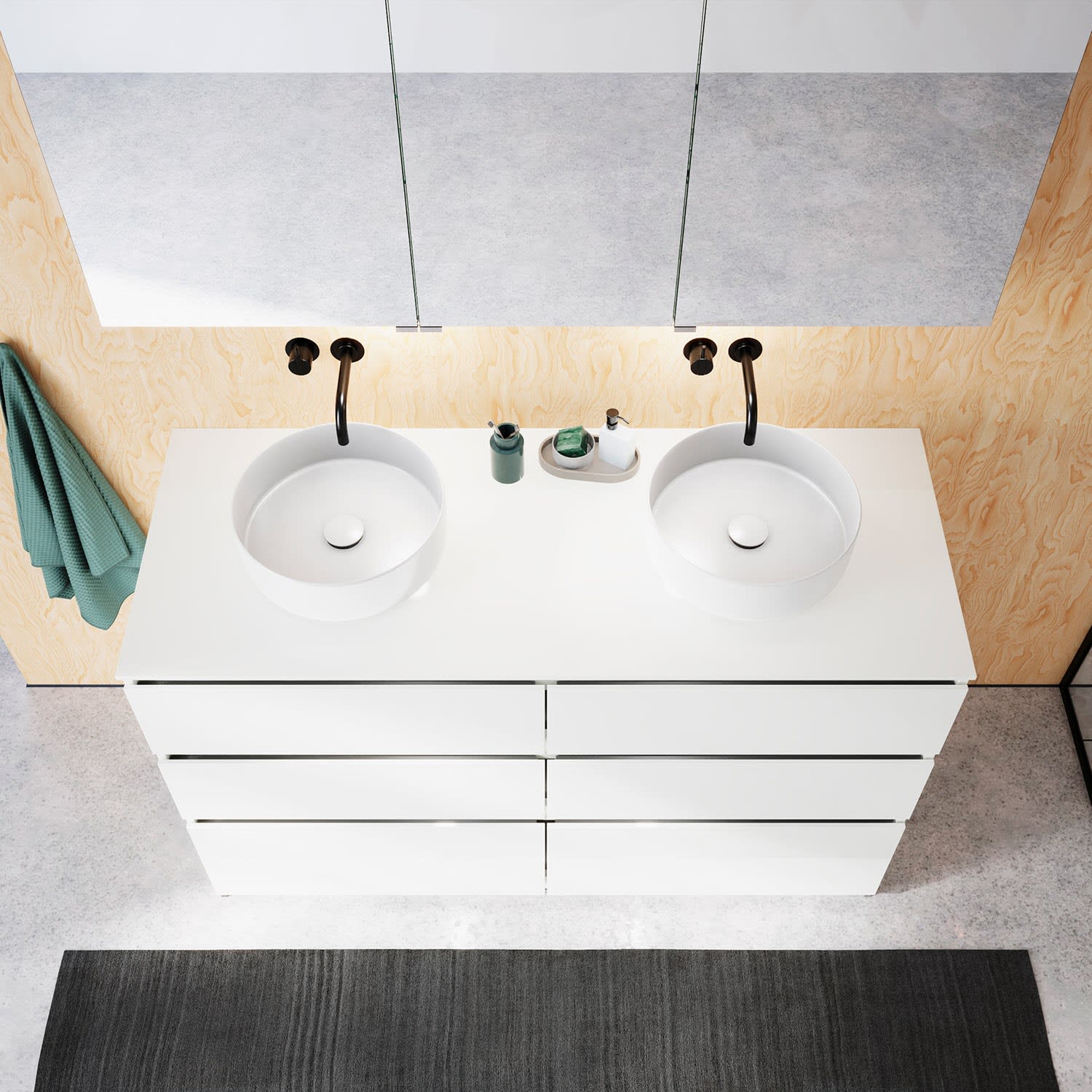 Die Waschtischplatte wird ohne Armaturbohrung geliefert. Armaturbohrungen müssen bauseits vorgenommen werden.