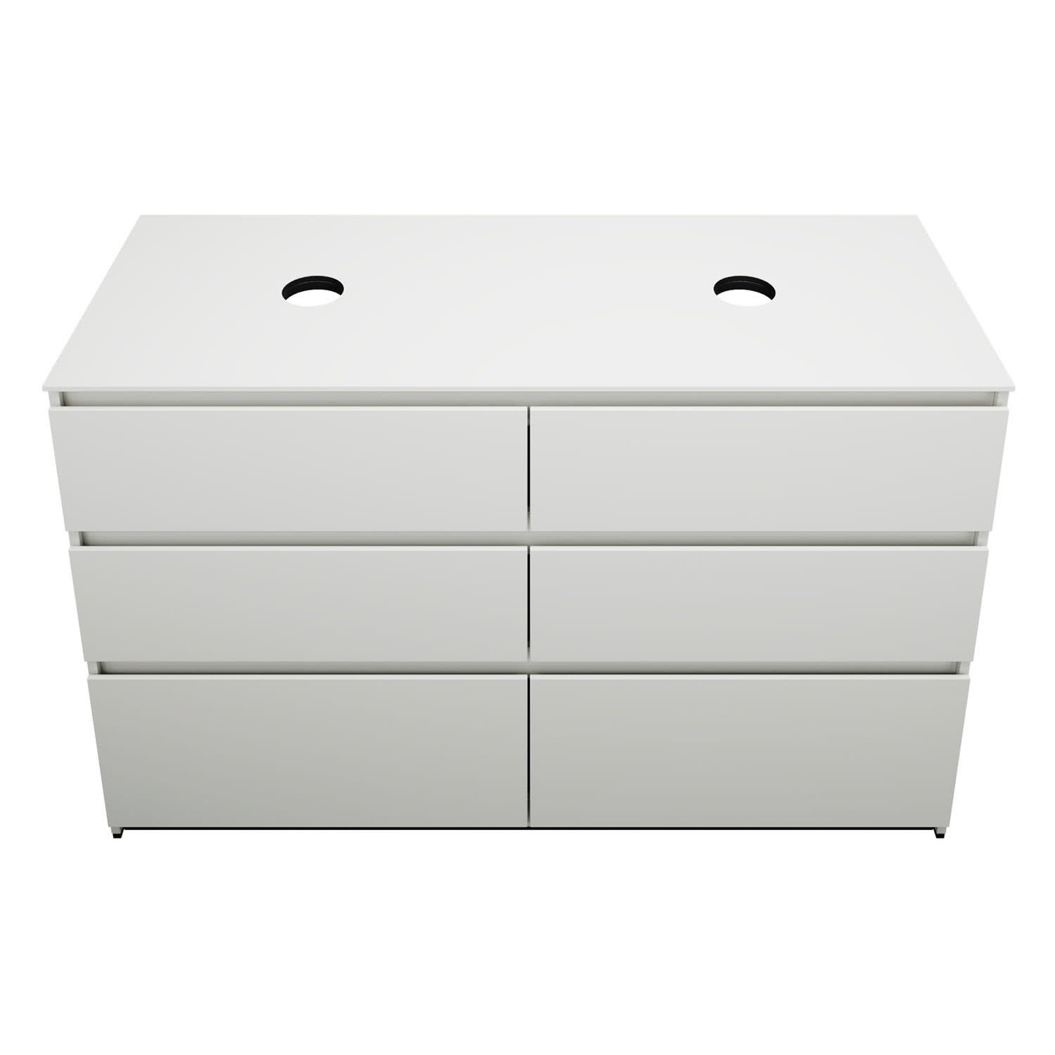 burgbad Lin20 Waschtischunterschrank mit Konsolenplatte 140 cm, 6 Auszüge, Beckenausschnitt links und rechts
