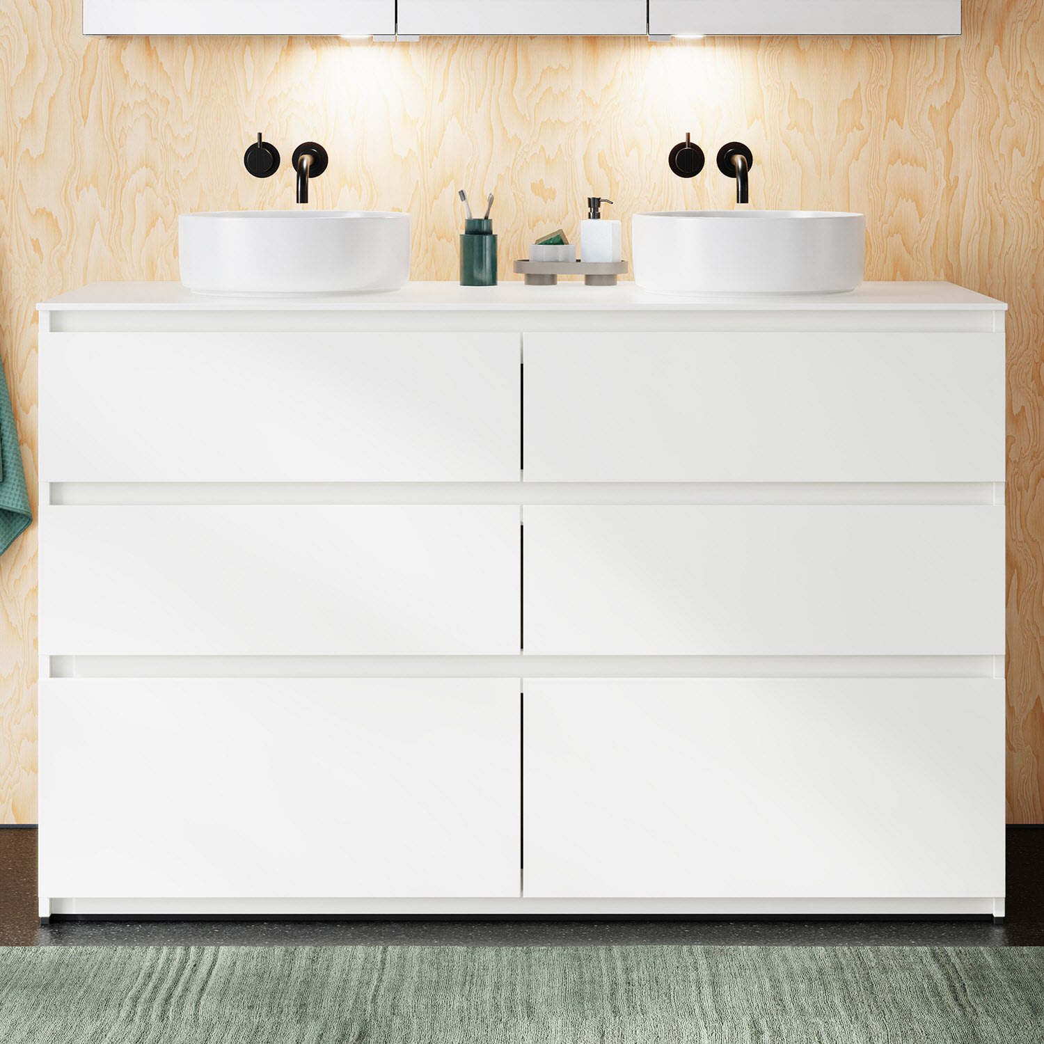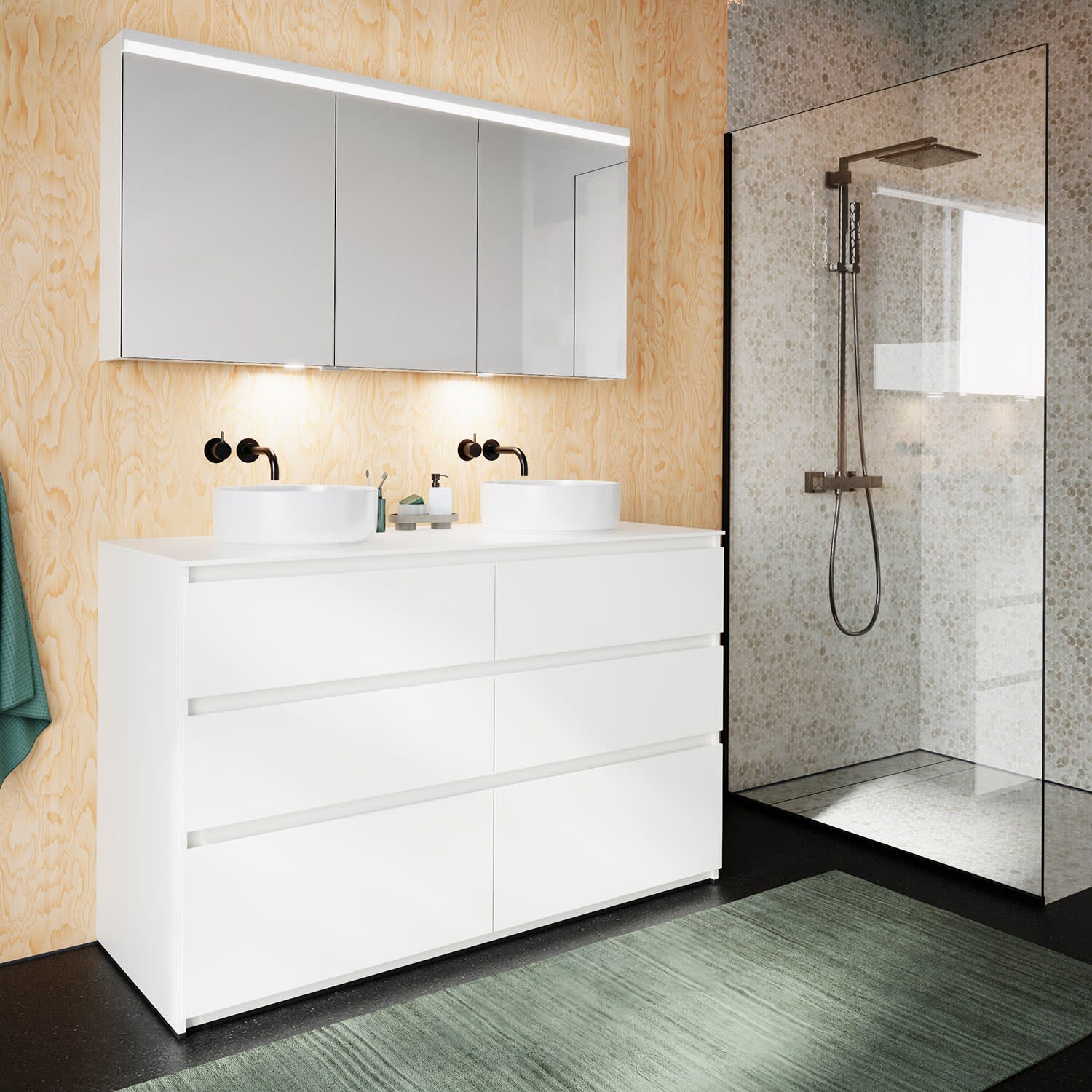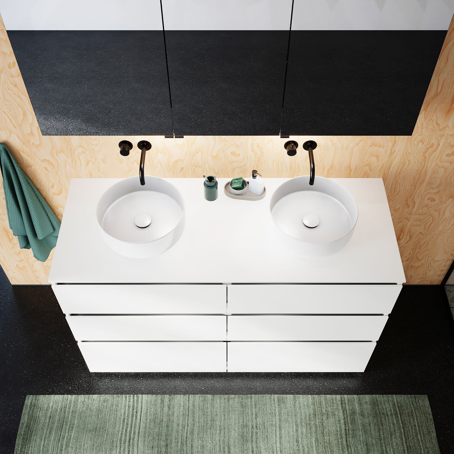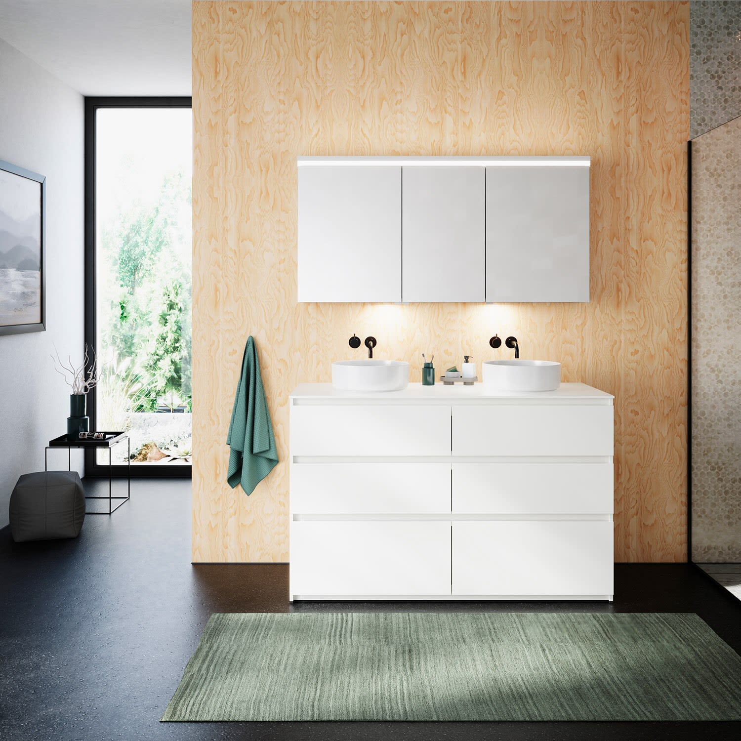 burgbad Lin20 Waschtischunterschrank mit Konsolenplatte 140 cm, 6 Auszüge, Beckenausschnitt links und rechts