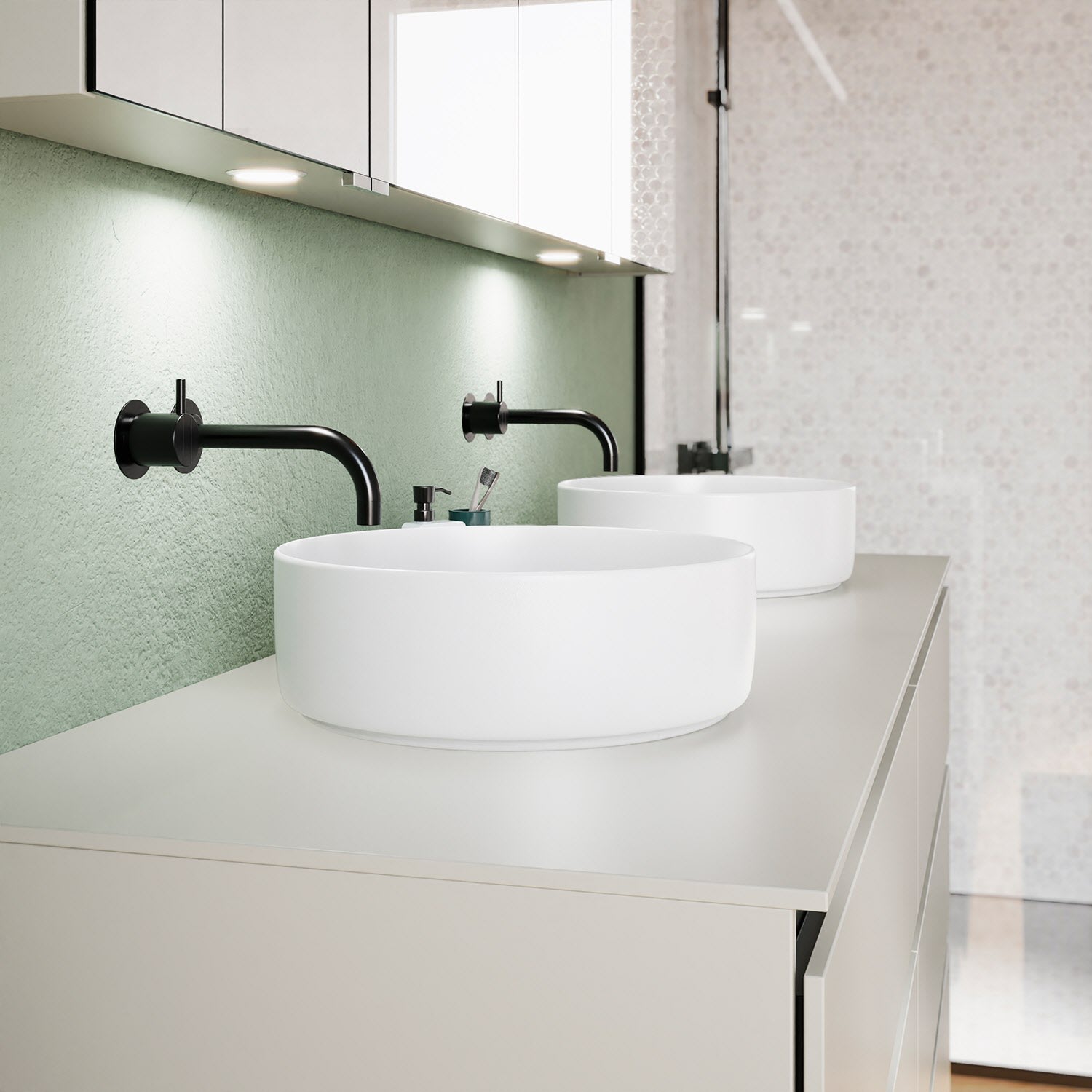 Die Waschtischplatte wird ohne Armaturbohrung geliefert. Armaturbohrungen müssen bauseits vorgenommen werden.