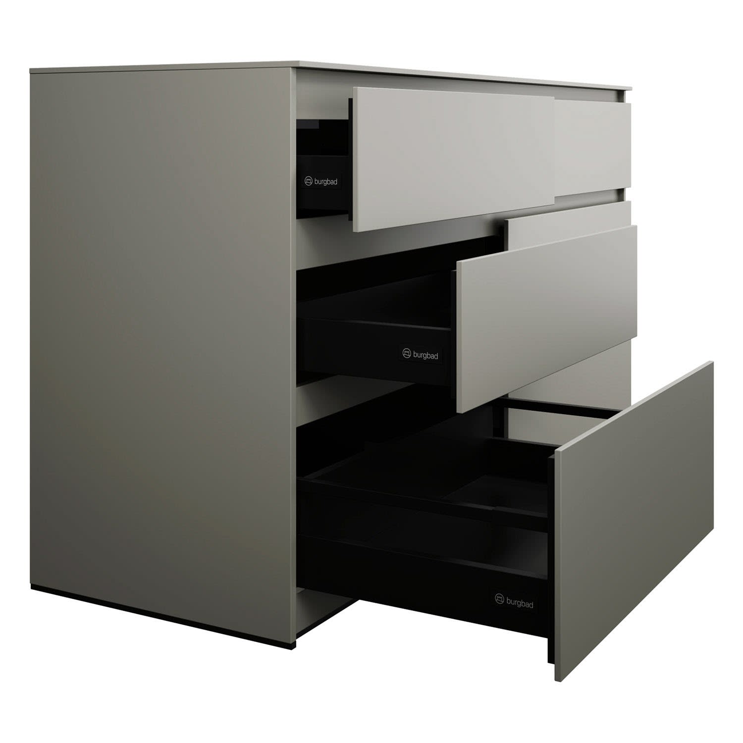 - Vollauszug mit geräuscharmem Selbsteinzugsmechanismus inklusive Anschlagdämpfung (Silent System)