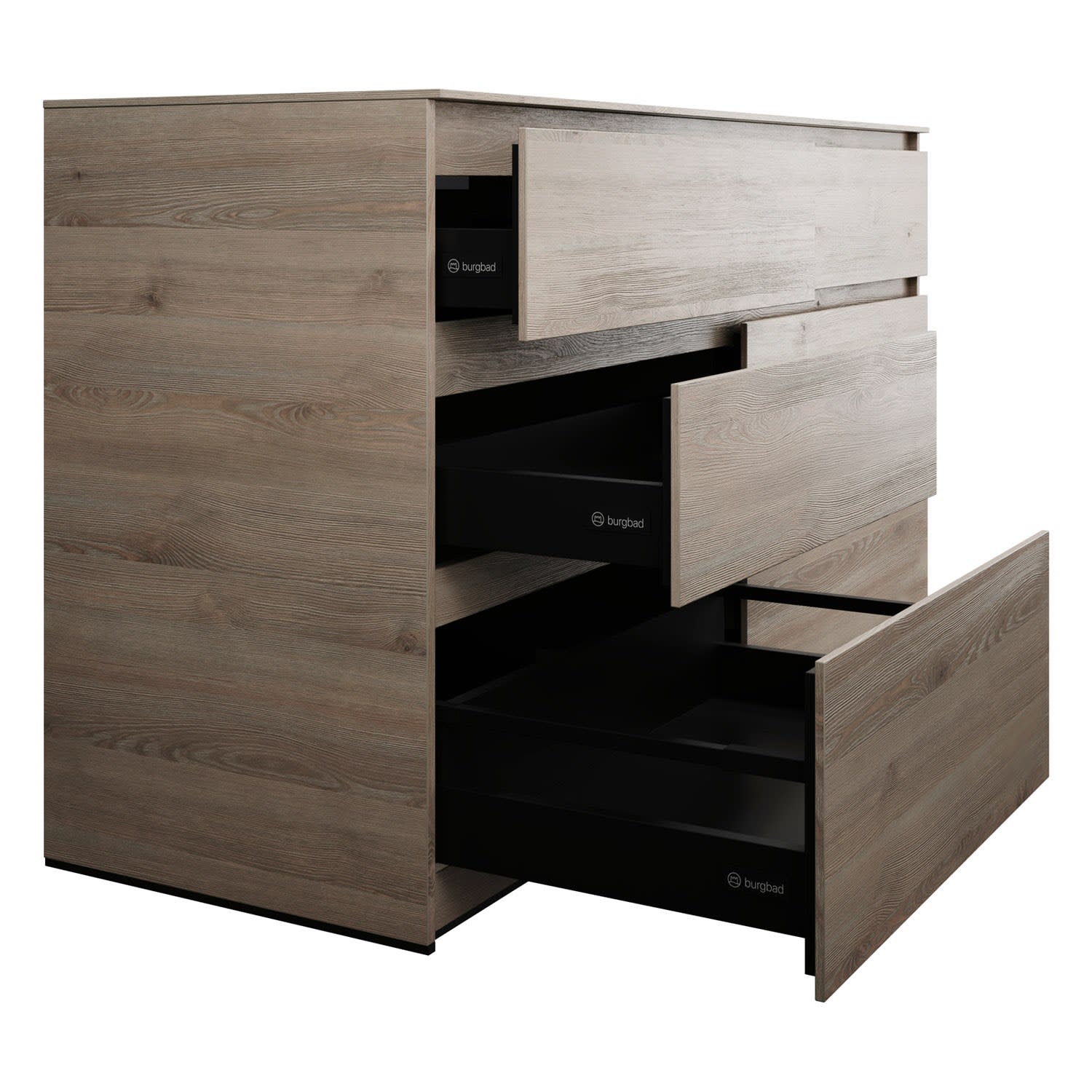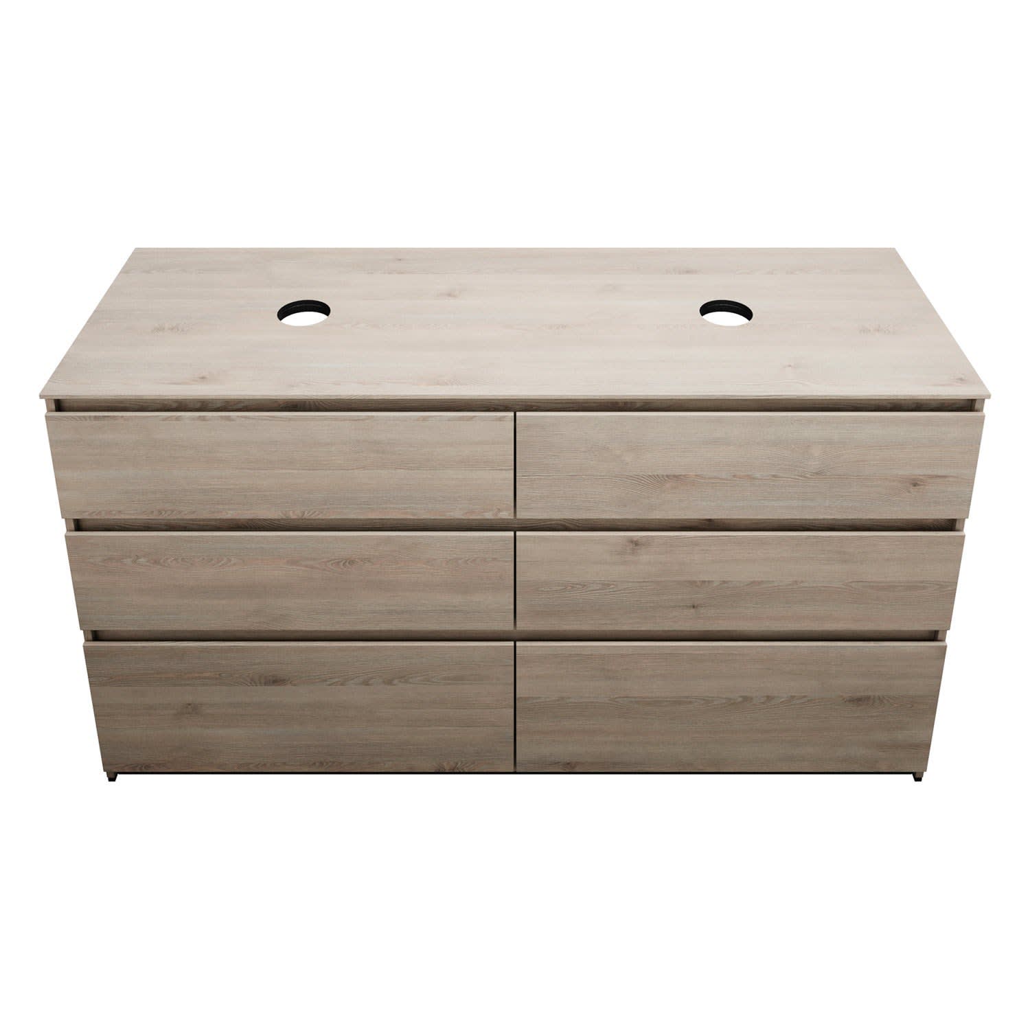 burgbad Lin20 Waschtischunterschrank mit Konsolenplatte 160 cm, 6 Auszüge, Beckenausschnitt links und rechts