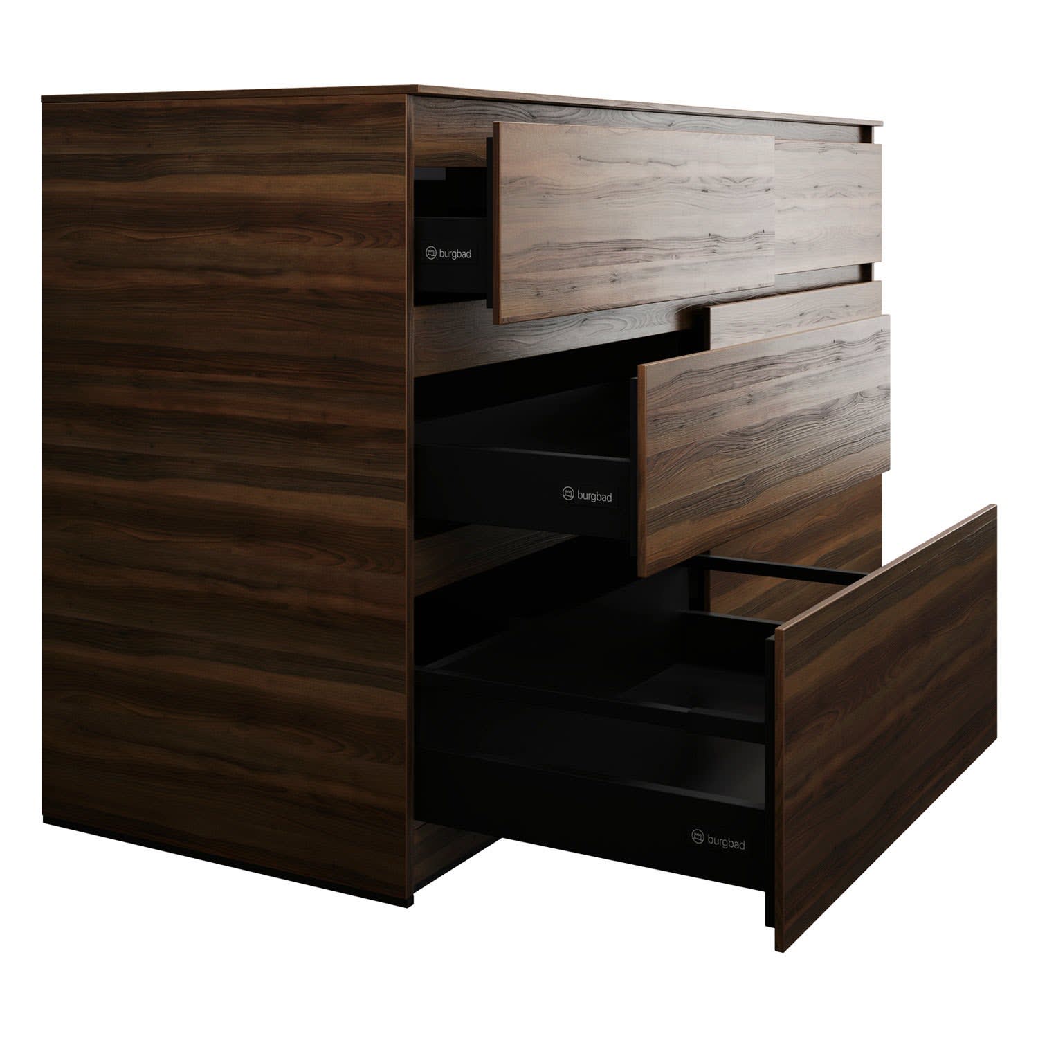 burgbad Lin20 Waschtischunterschrank mit Konsolenplatte 160 cm, 6 Auszüge, Beckenausschnitt links und rechts