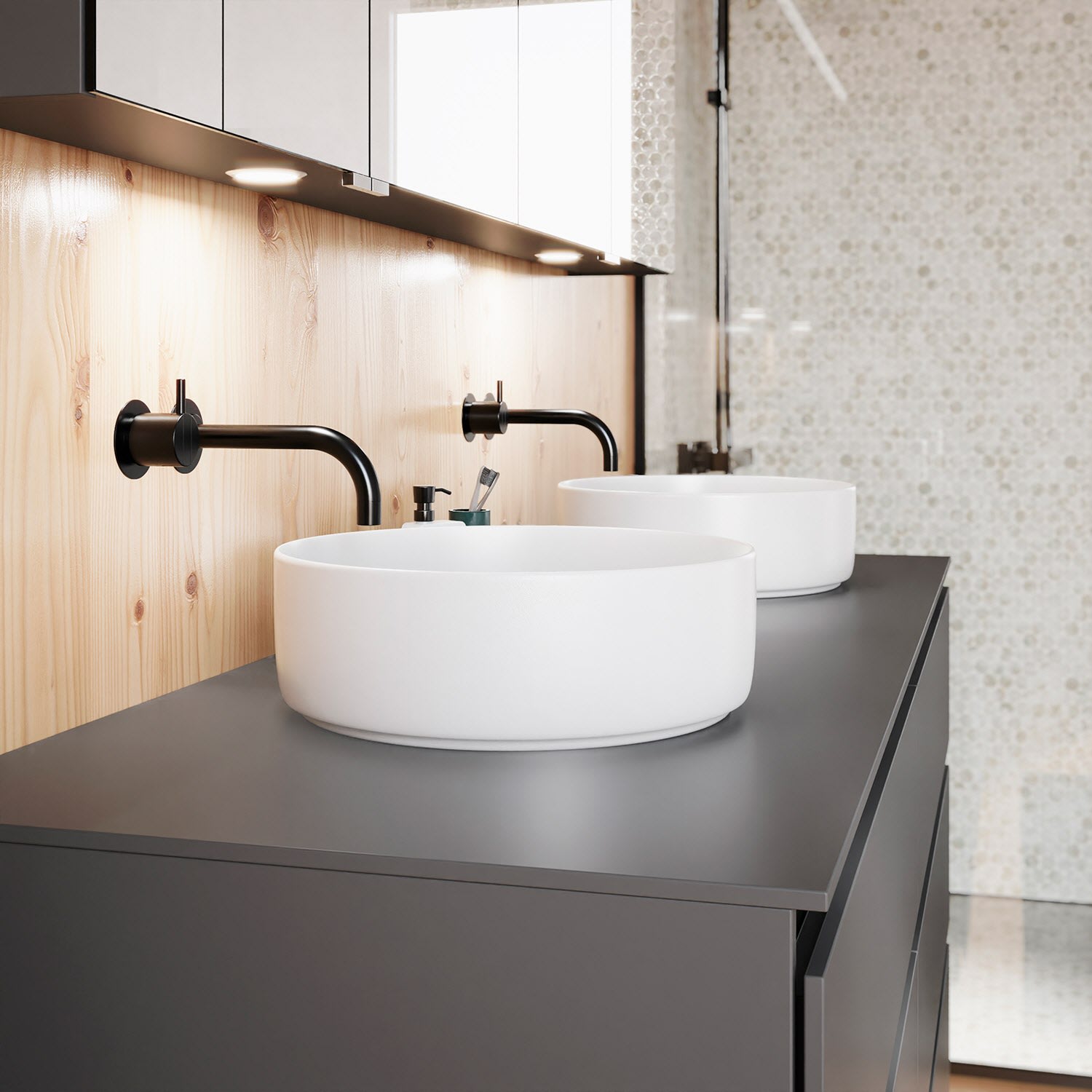 Die Waschtischplatte wird ohne Armaturbohrung geliefert. Armaturbohrungen müssen bauseits vorgenommen werden.
