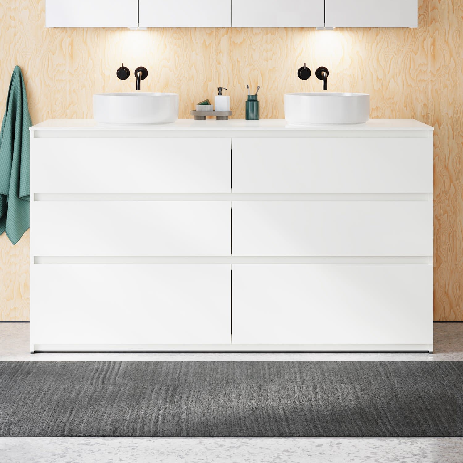 burgbad Lin20 Waschtischunterschrank mit Konsolenplatte 160 cm, 6 Auszüge, Beckenausschnitt links und rechts