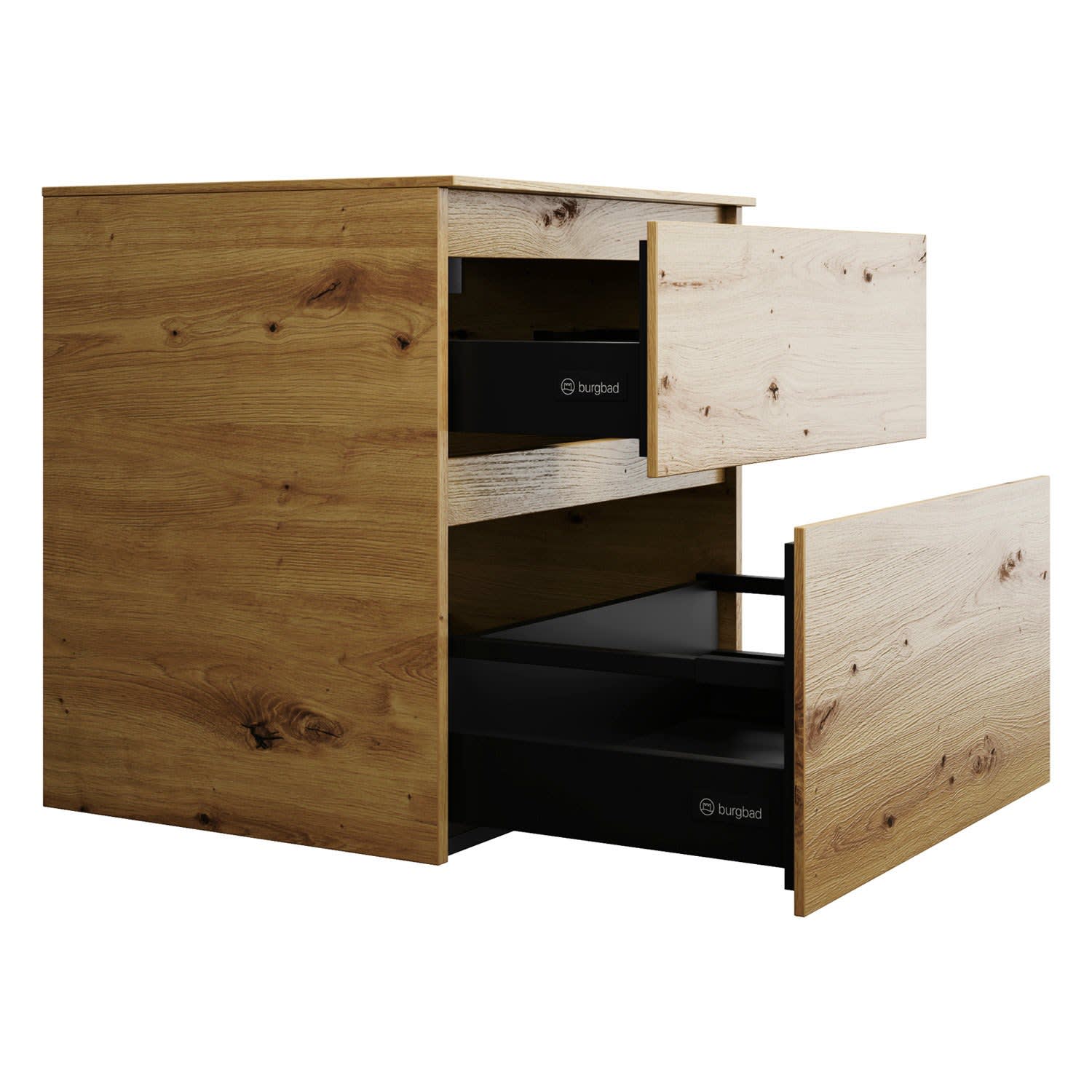 burgbad Lin20 Waschtischunterschrank mit Konsolenplatte 60 cm, 2 Auszüge, Beckenausschnitt mittig