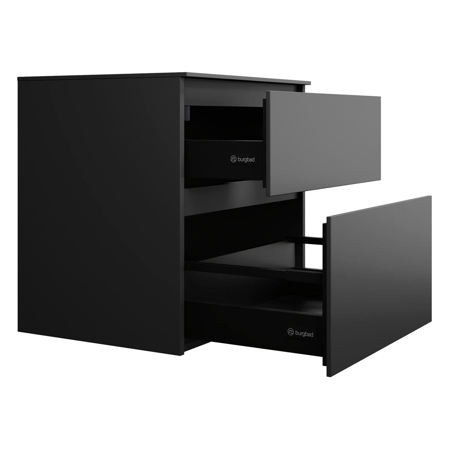 - Vollauszug mit geräuscharmem Selbsteinzugsmechanismus inklusive Anschlagdämpfung (Silent System)