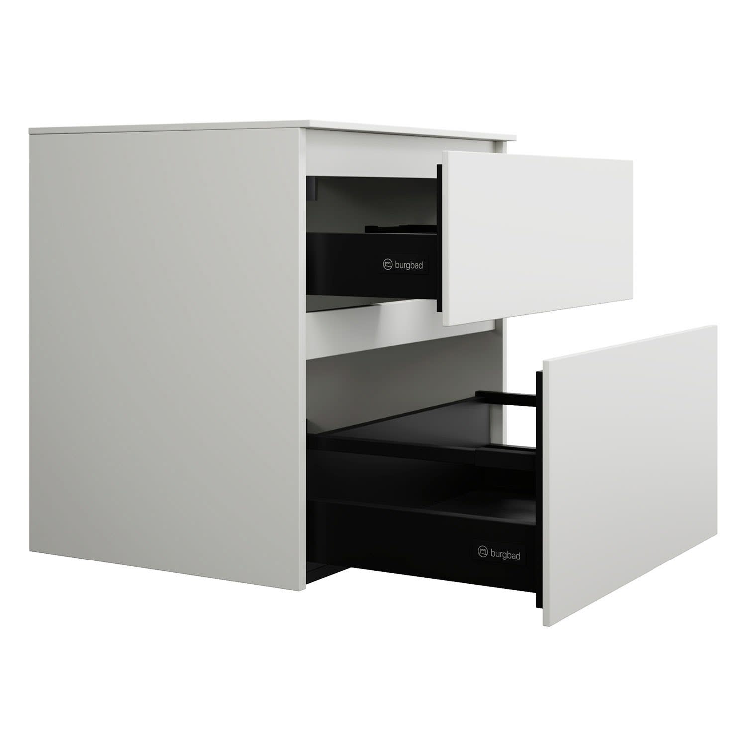 burgbad Lin20 Waschtischunterschrank mit Konsolenplatte 60 cm, 2 Auszüge, Beckenausschnitt mittig
