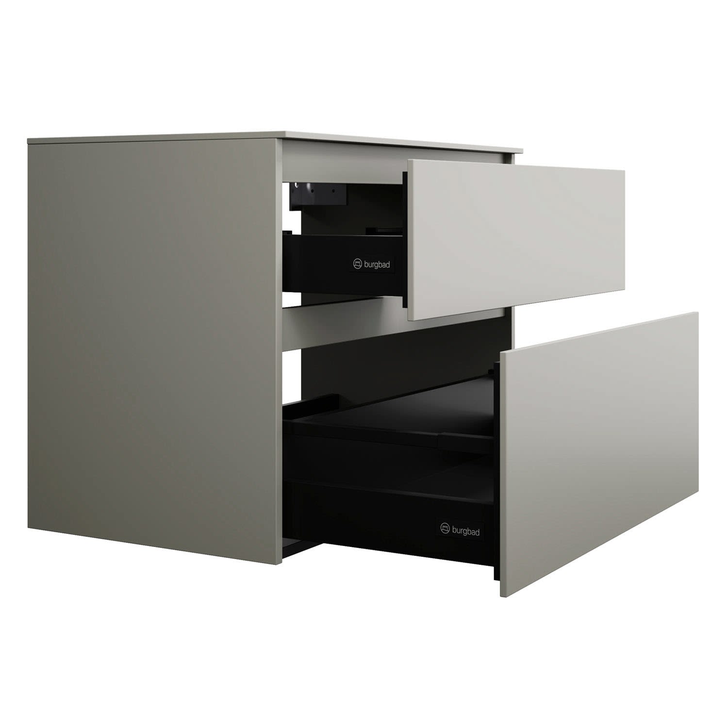 burgbad Lin20 Waschtischunterschrank mit Konsolenplatte 80 cm, 2 Auszüge, Beckenausschnitt mittig