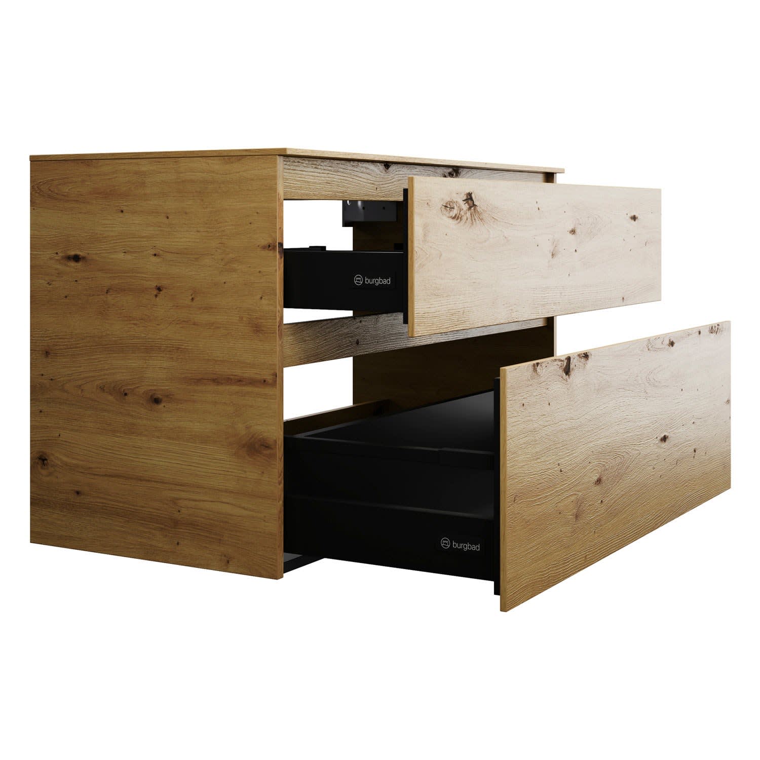 burgbad Lin20 Waschtischunterschrank mit Konsolenplatte 100 cm, 2 Auszüge, Beckenausschnitt mittig