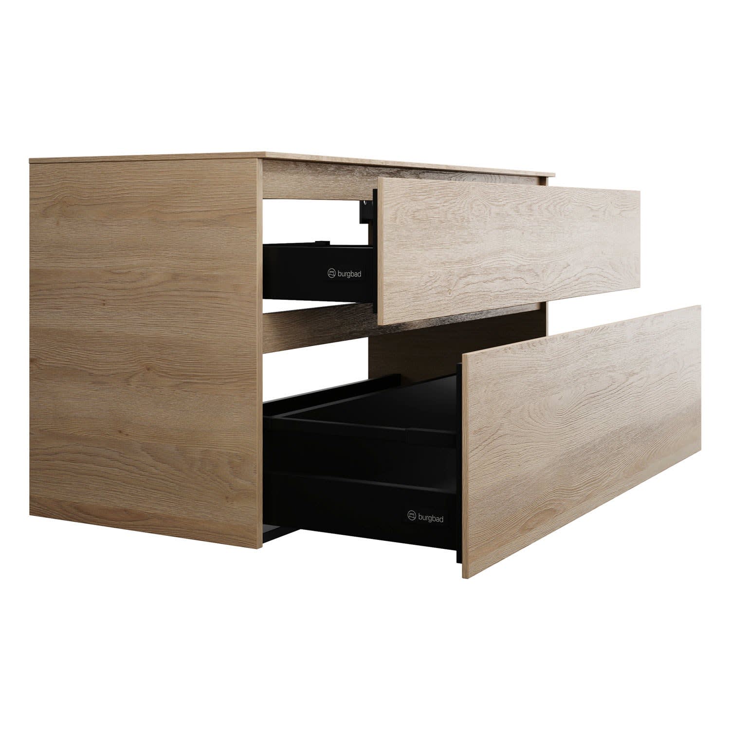 burgbad Lin20 Waschtischunterschrank mit Konsolenplatte 120 cm, 2 Auszüge, Beckenausschnitt mittig