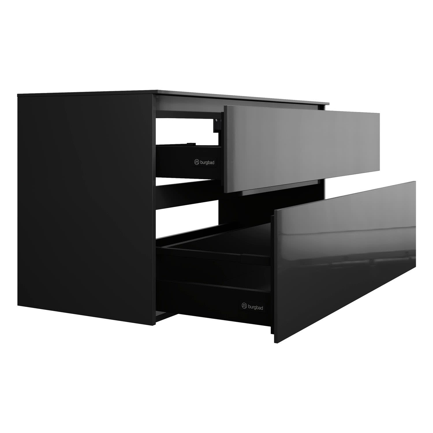 - Vollauszug mit geräuscharmem Selbsteinzugsmechanismus inklusive Anschlagdämpfung (Silent System)