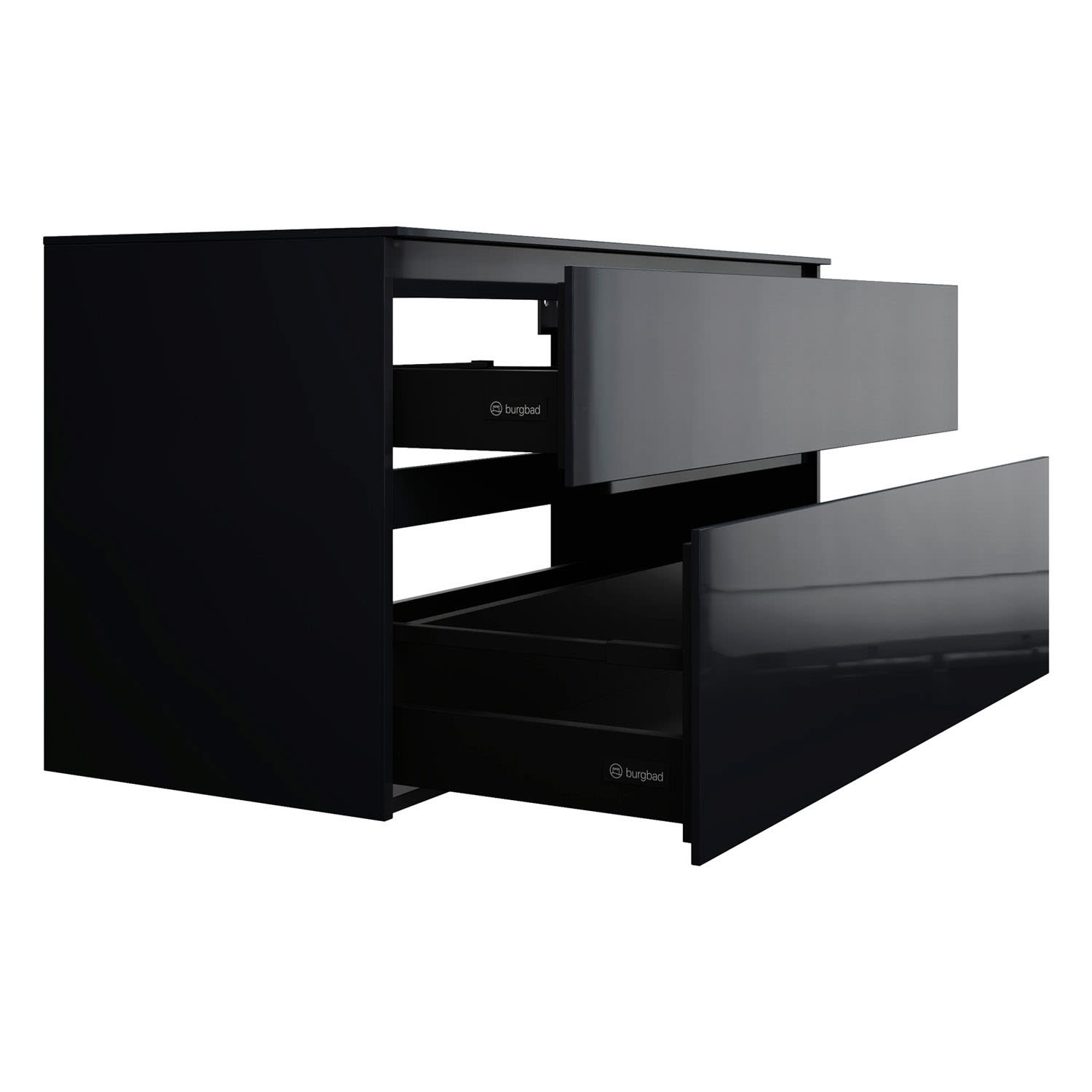 - Vollauszug mit geräuscharmem Selbsteinzugsmechanismus inklusive Anschlagdämpfung (Silent System)