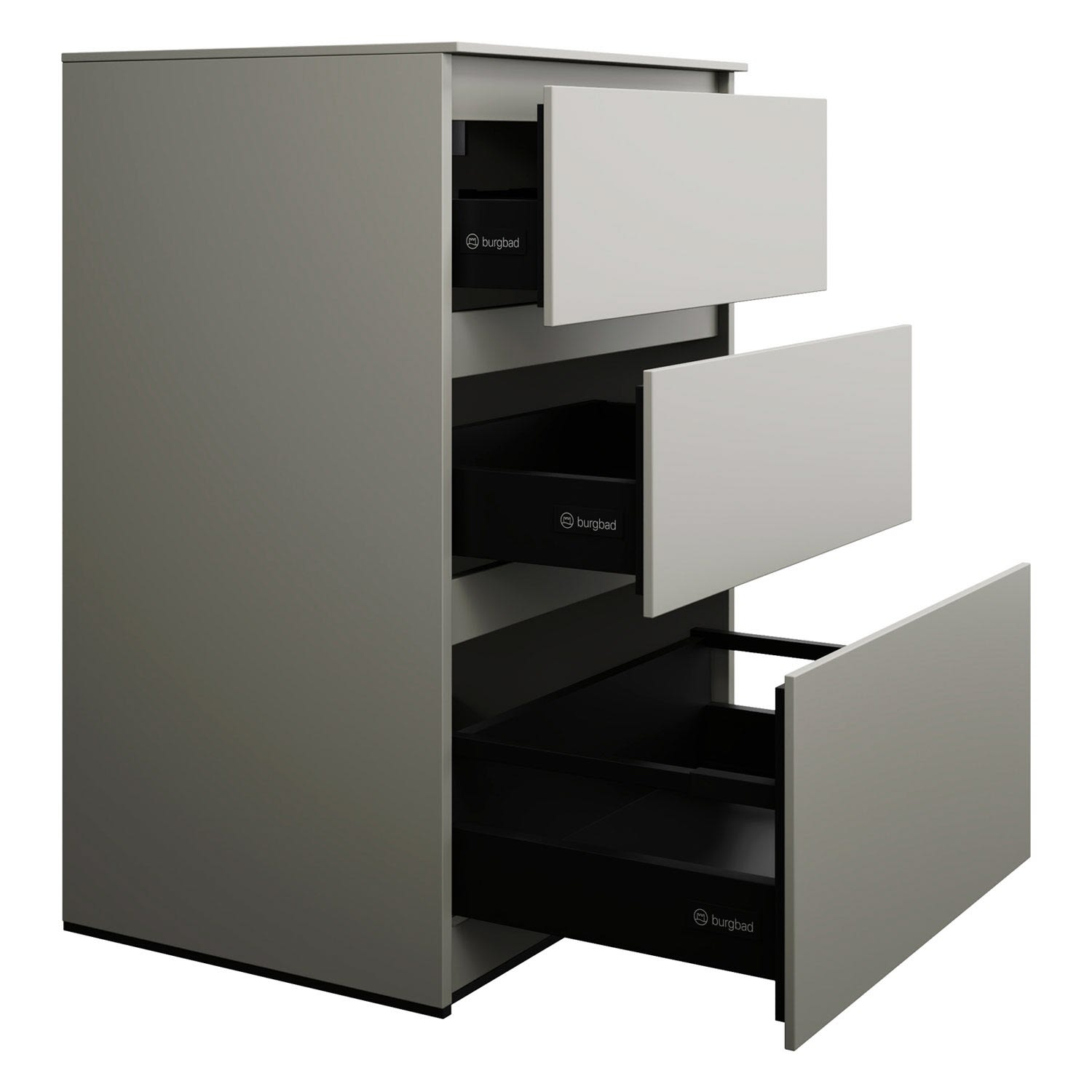 burgbad Lin20 Waschtischunterschrank mit Konsolenplatte 60 cm, 3 Auszüge, Beckenausschnitt mittig