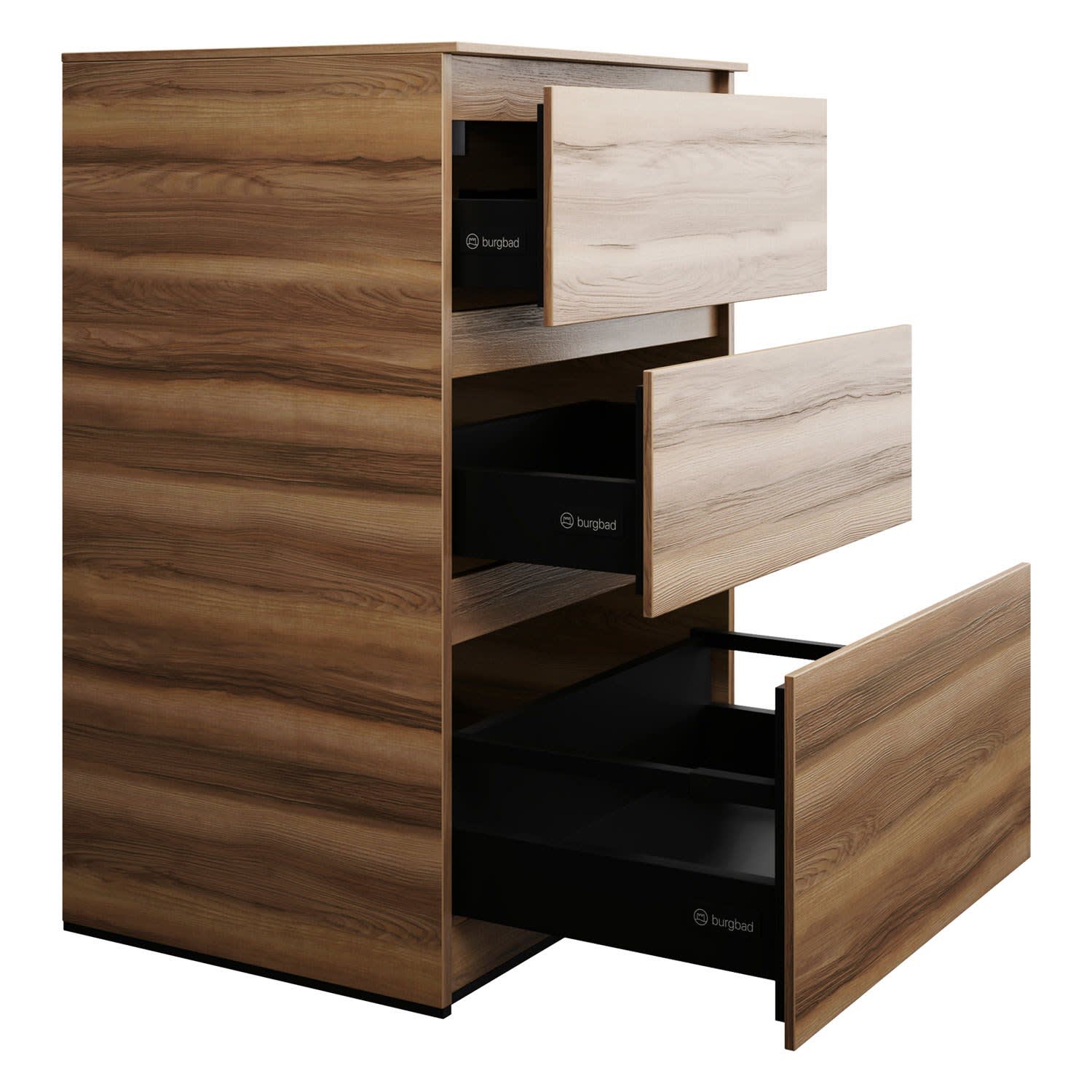 burgbad Lin20 Waschtischunterschrank mit Konsolenplatte 60 cm, 3 Auszüge, Beckenausschnitt mittig