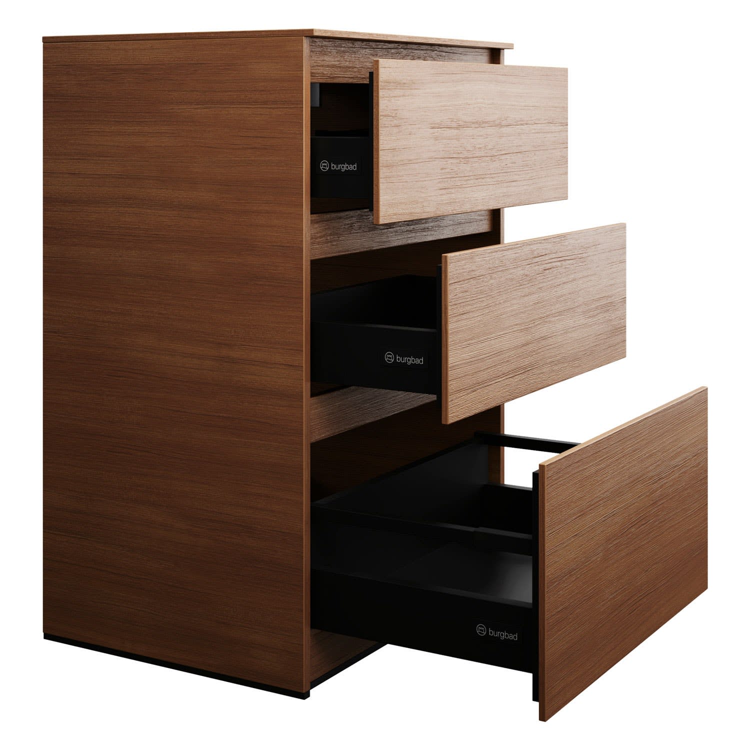 burgbad Lin20 Waschtischunterschrank mit Konsolenplatte 60 cm, 3 Auszüge, Beckenausschnitt mittig