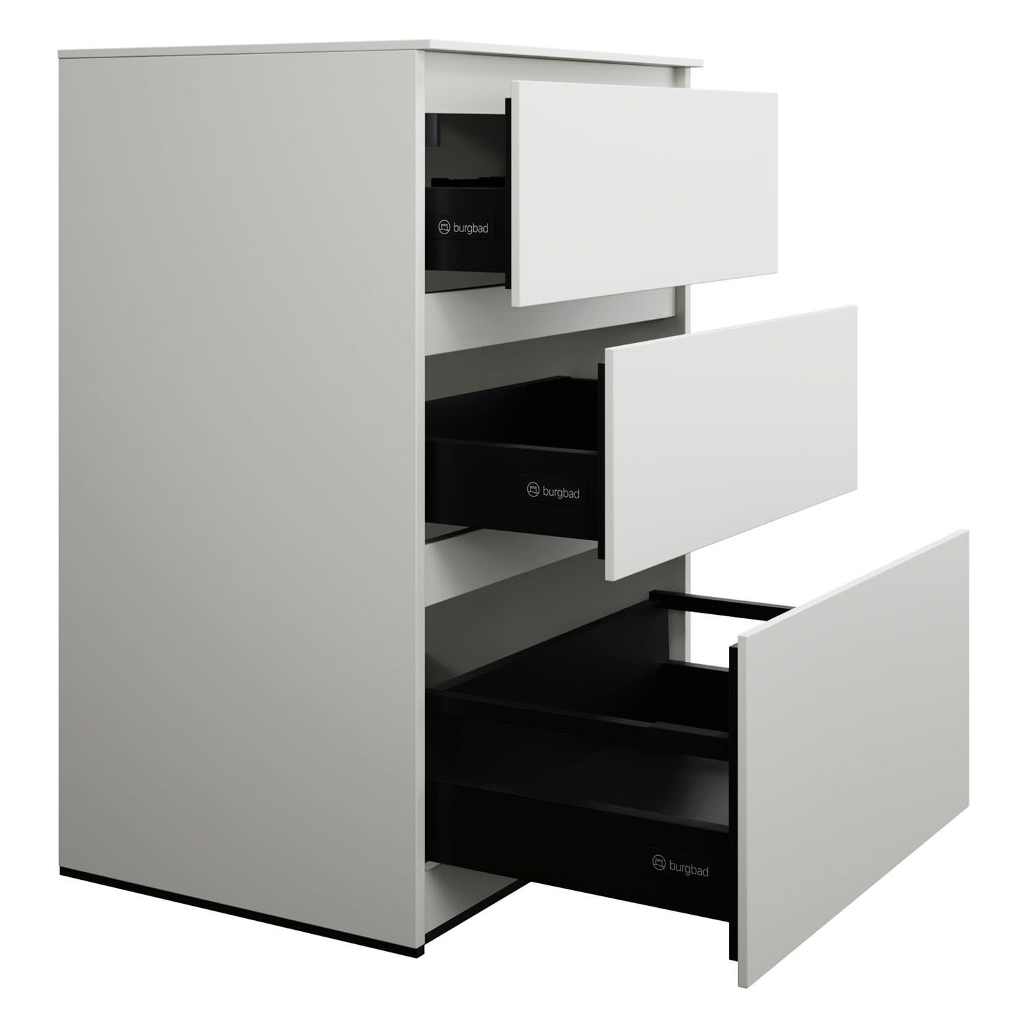burgbad Lin20 Waschtischunterschrank mit Konsolenplatte 60 cm, 3 Auszüge, Beckenausschnitt mittig