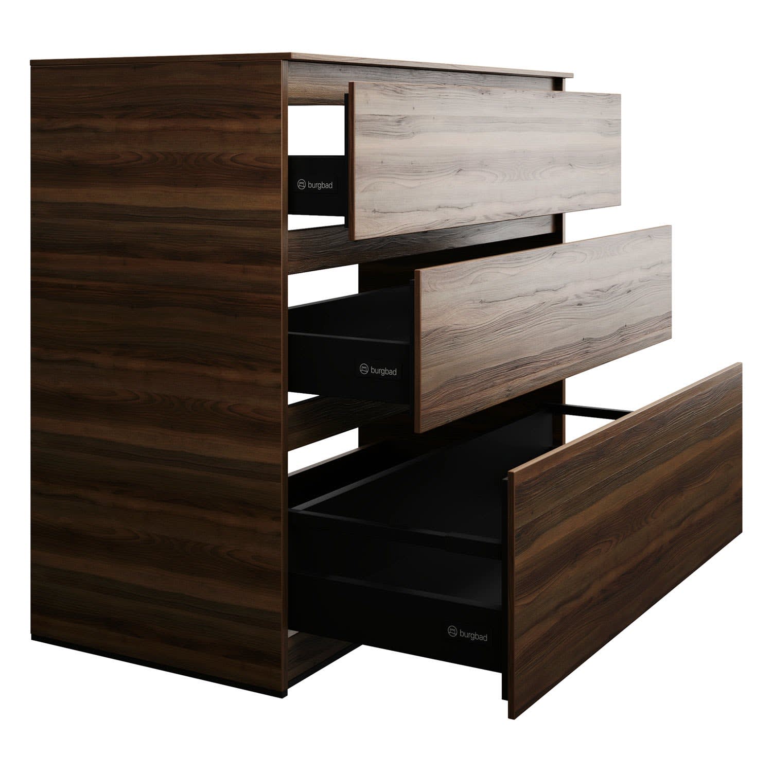 - Vollauszug mit geräuscharmem Selbsteinzugsmechanismus inklusive Anschlagdämpfung (Silent System)