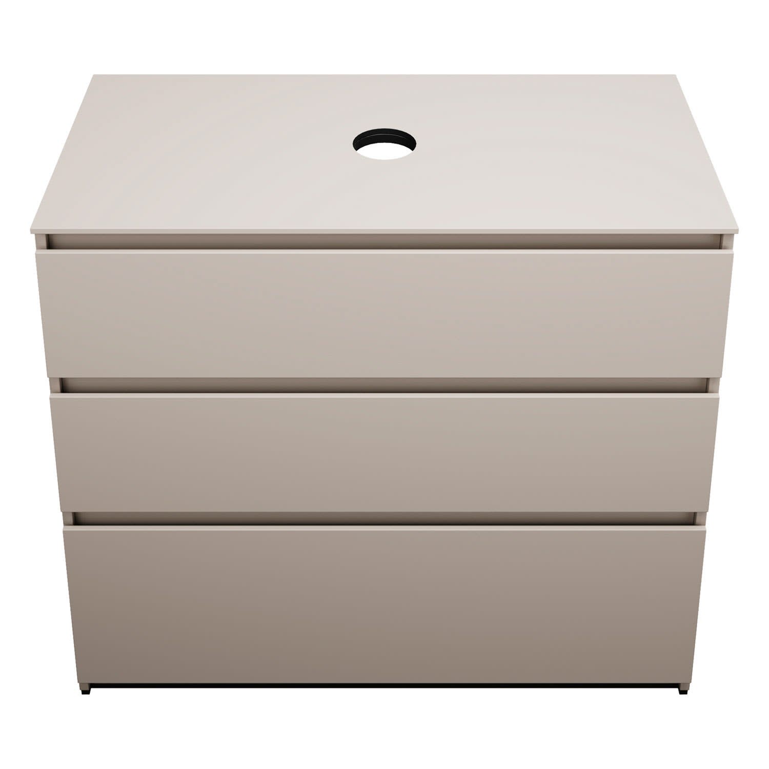 burgbad Lin20 Waschtischunterschrank mit Konsolenplatte 100 cm, 3 Auszüge, Beckenausschnitt mittig