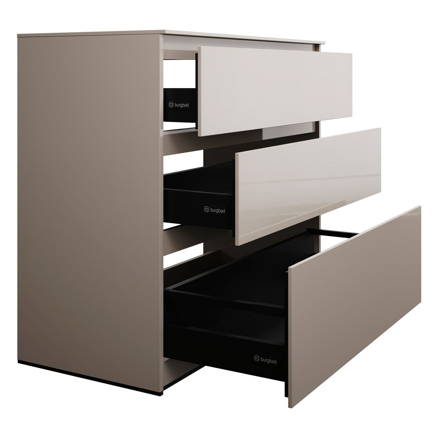 - Vollauszug mit geräuscharmem Selbsteinzugsmechanismus inklusive Anschlagdämpfung (Silent System)