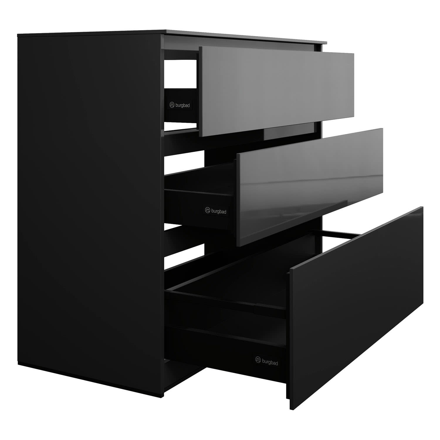 - Vollauszug mit geräuscharmem Selbsteinzugsmechanismus inklusive Anschlagdämpfung (Silent System)