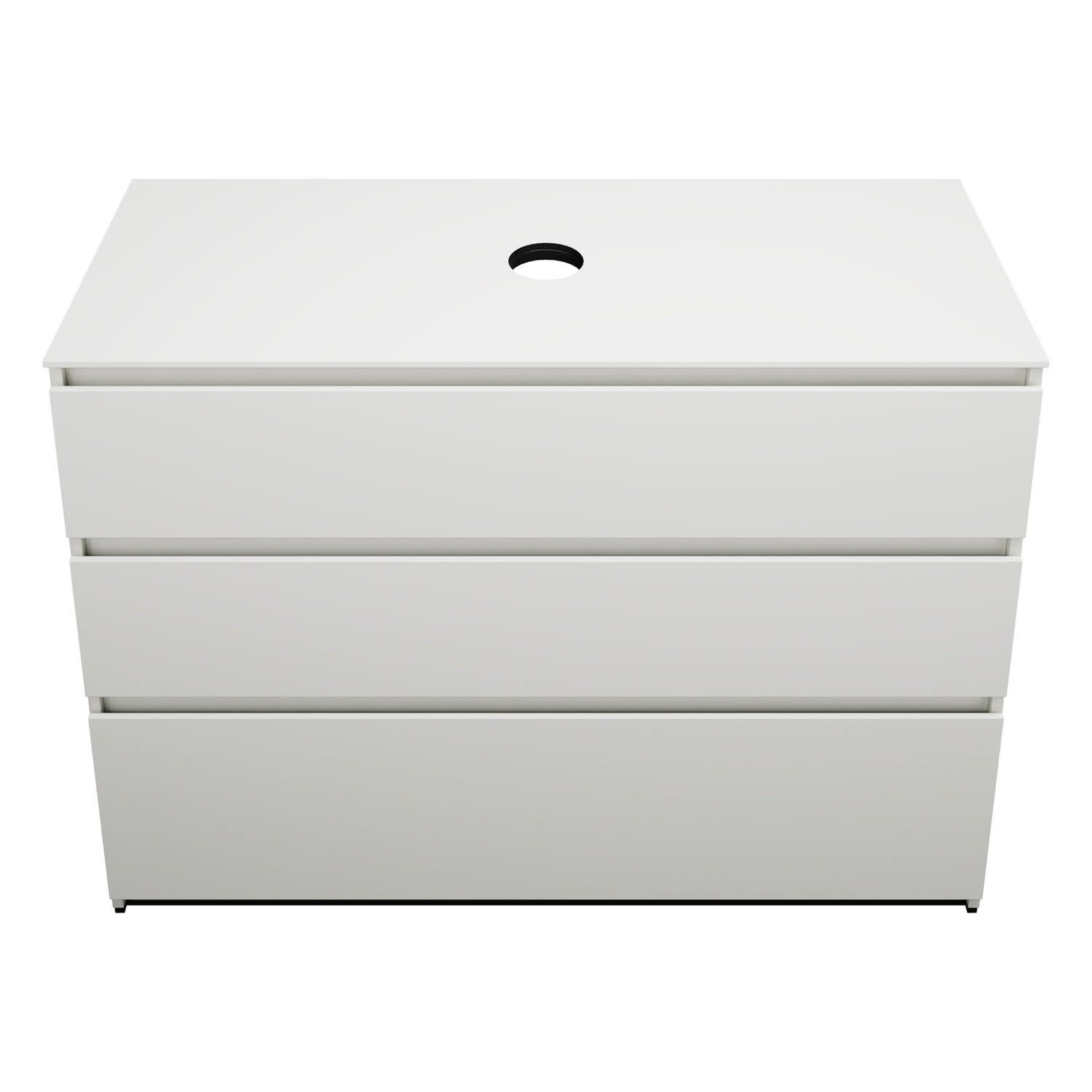 burgbad Lin20 Waschtischunterschrank mit Konsolenplatte 120 cm, 3 Auszüge, Beckenausschnitt mittig