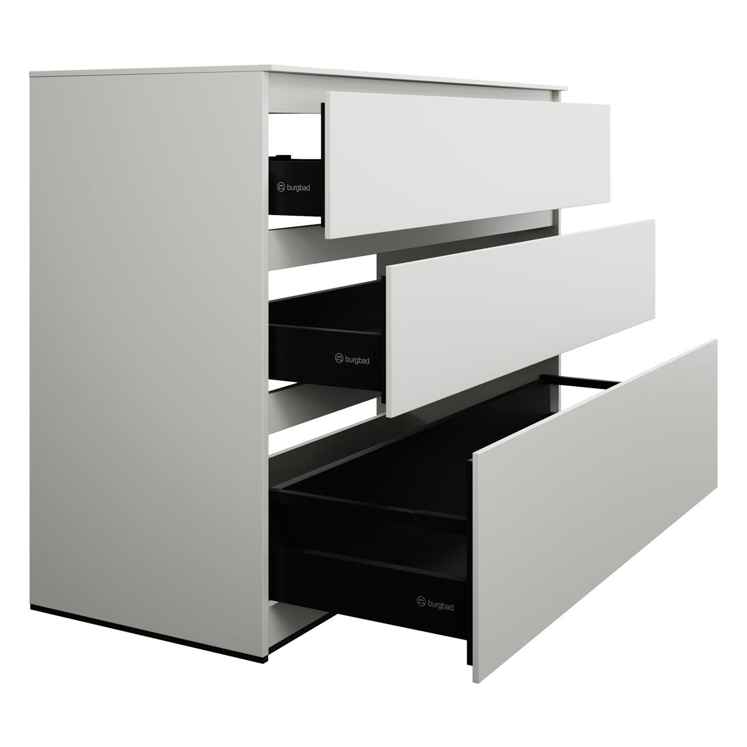 - Vollauszug mit geräuscharmem Selbsteinzugsmechanismus inklusive Anschlagdämpfung (Silent System)