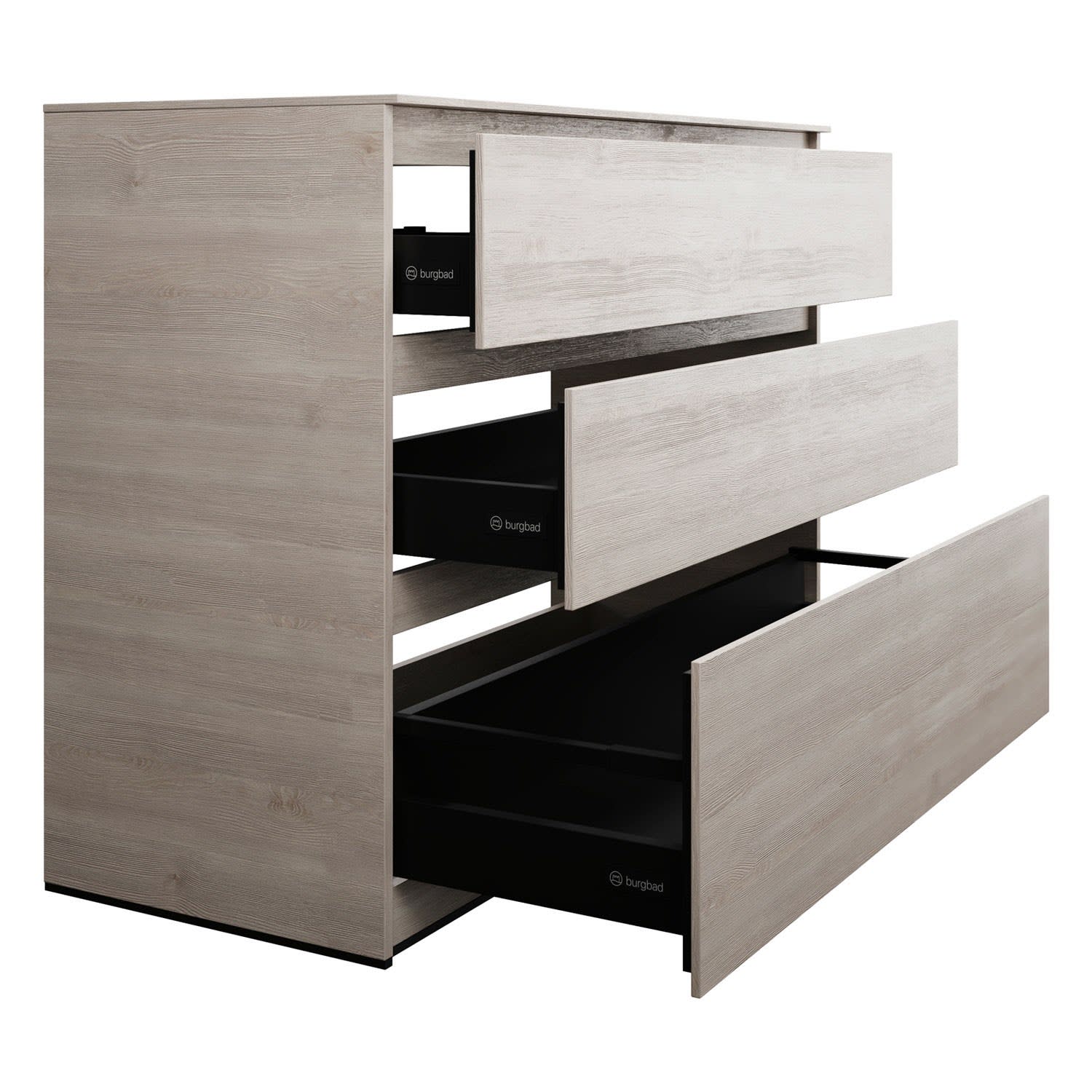 - Material Front und Korpus: E1-Spanplatte melaminbeschichtet