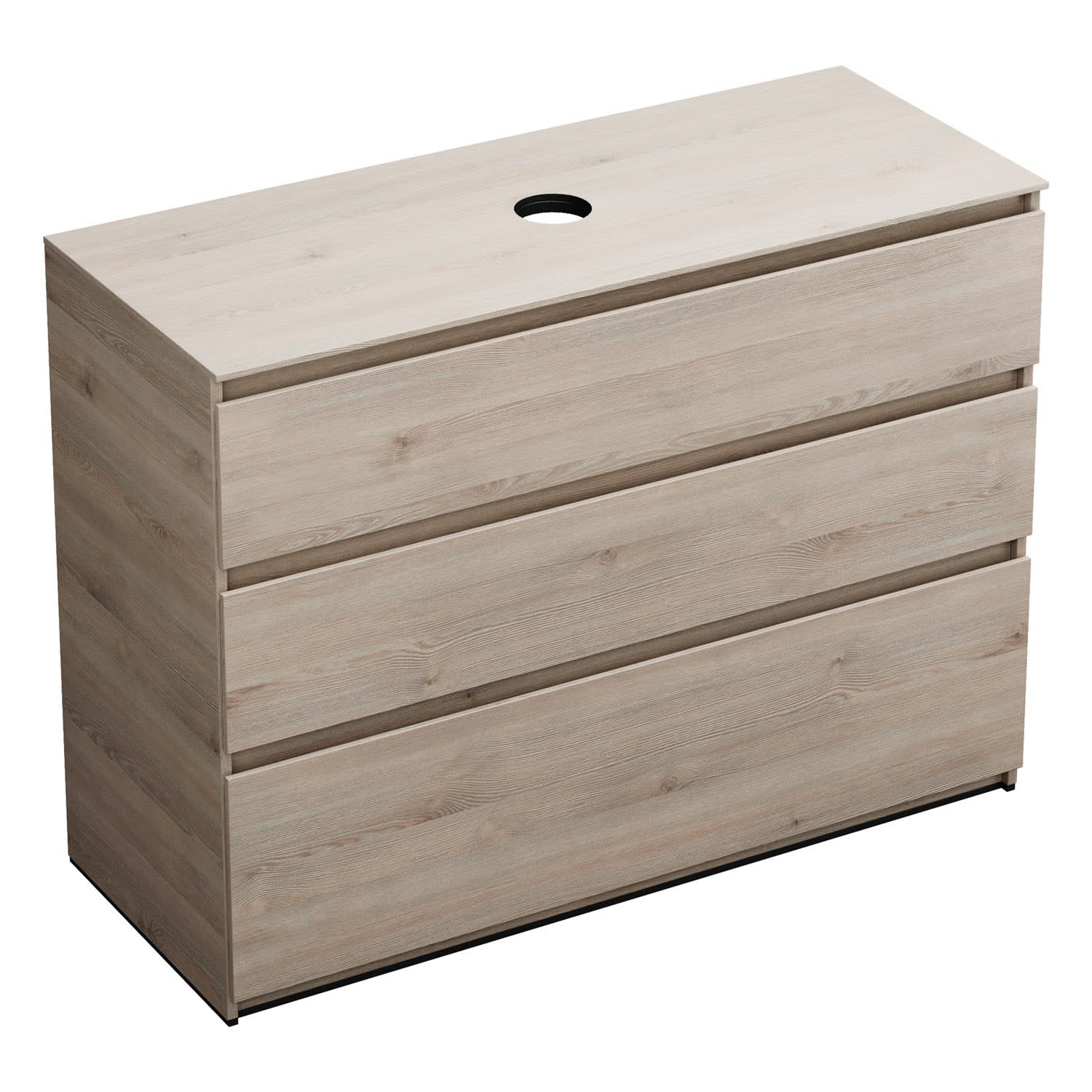 burgbad Lin20 Waschtischunterschrank mit Konsolenplatte 120 cm, 3 Auszüge, Beckenausschnitt mittig