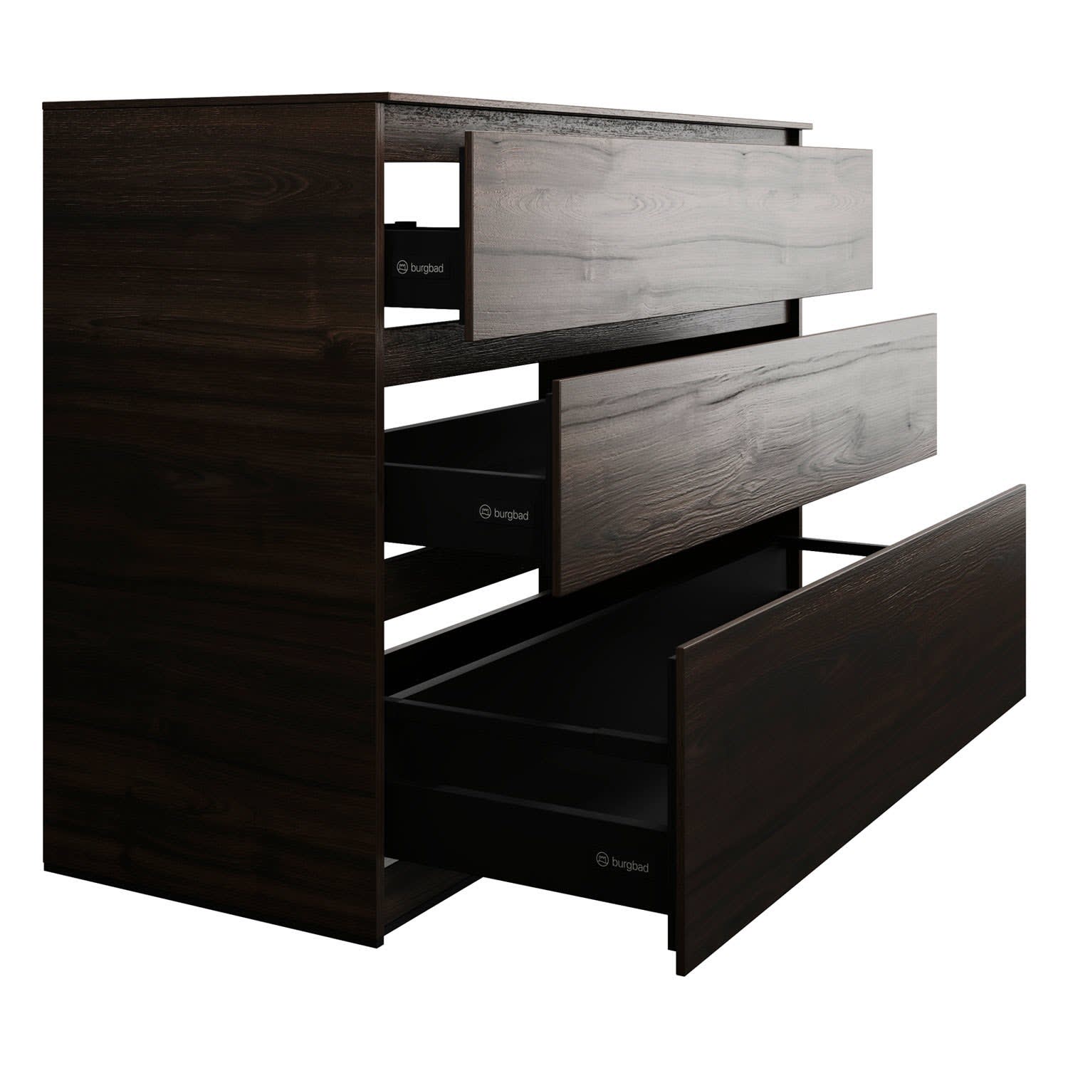 - Vollauszug mit geräuscharmem Selbsteinzugsmechanismus inklusive Anschlagdämpfung (Silent System)