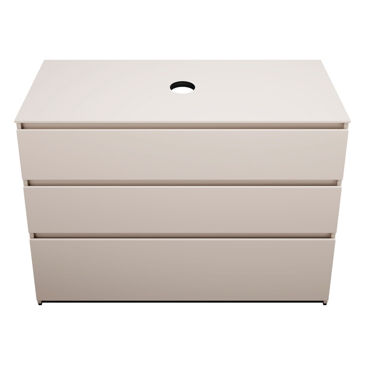 - Position Beckenausschnitt in der Tiefe: mittig bei Becken ohne Wandbefestigung oder wandbündig bei Becken mit Wandbefestigung (Bitte bei Bestellung den gewünschten Waschtisch mit angebeben.)