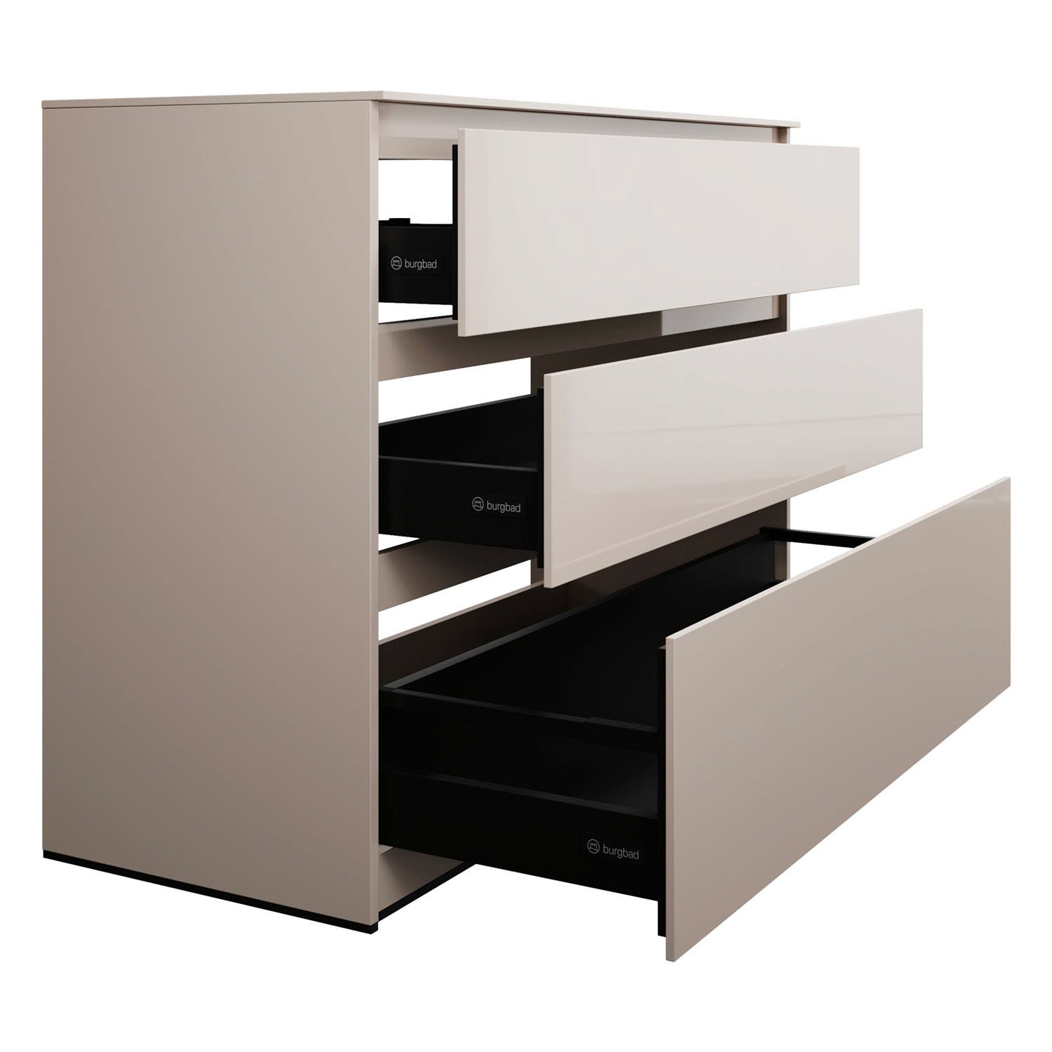 - Vollauszug mit geräuscharmem Selbsteinzugsmechanismus inklusive Anschlagdämpfung (Silent System)