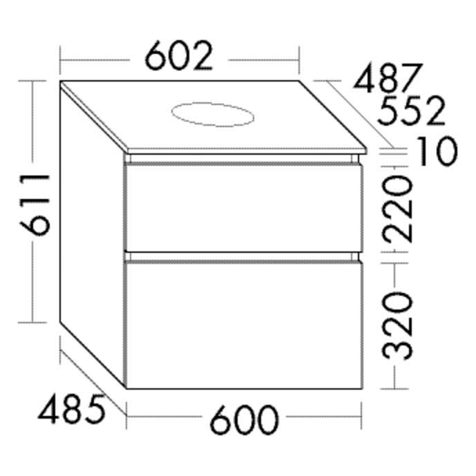 - Position Beckenausschnitt in der Tiefe: mittig bei Becken ohne Wandbefestigung oder wandbündig bei Becken mit Wandbefestigung (Bitte bei Bestellung den gewünschten Waschtisch mit angebeben.)